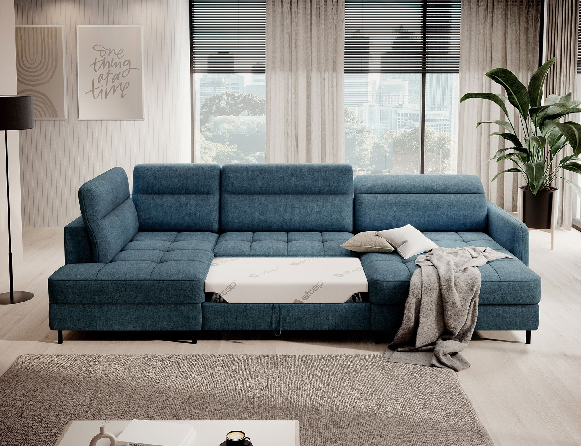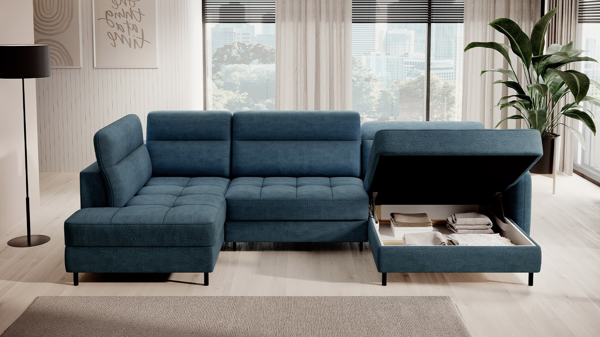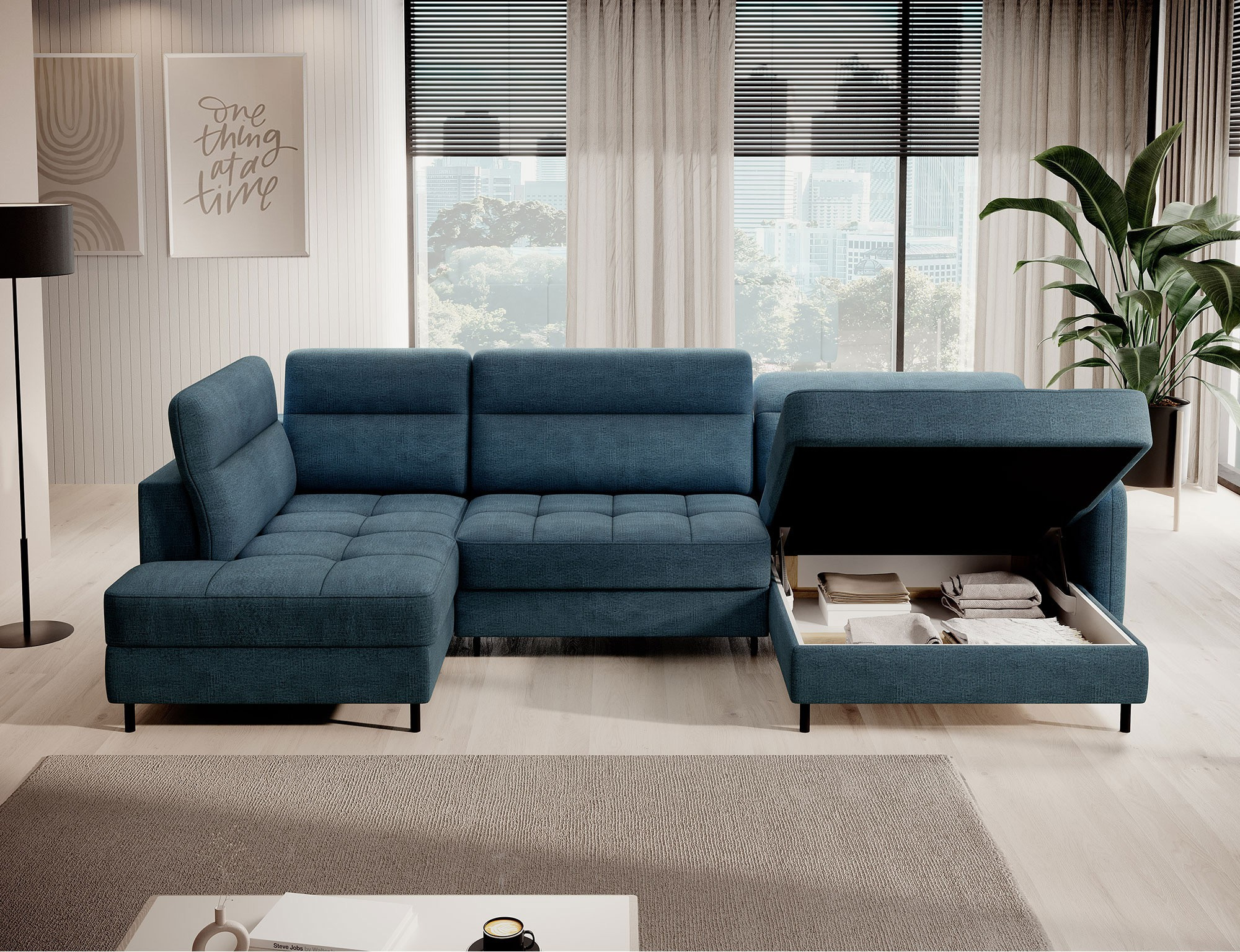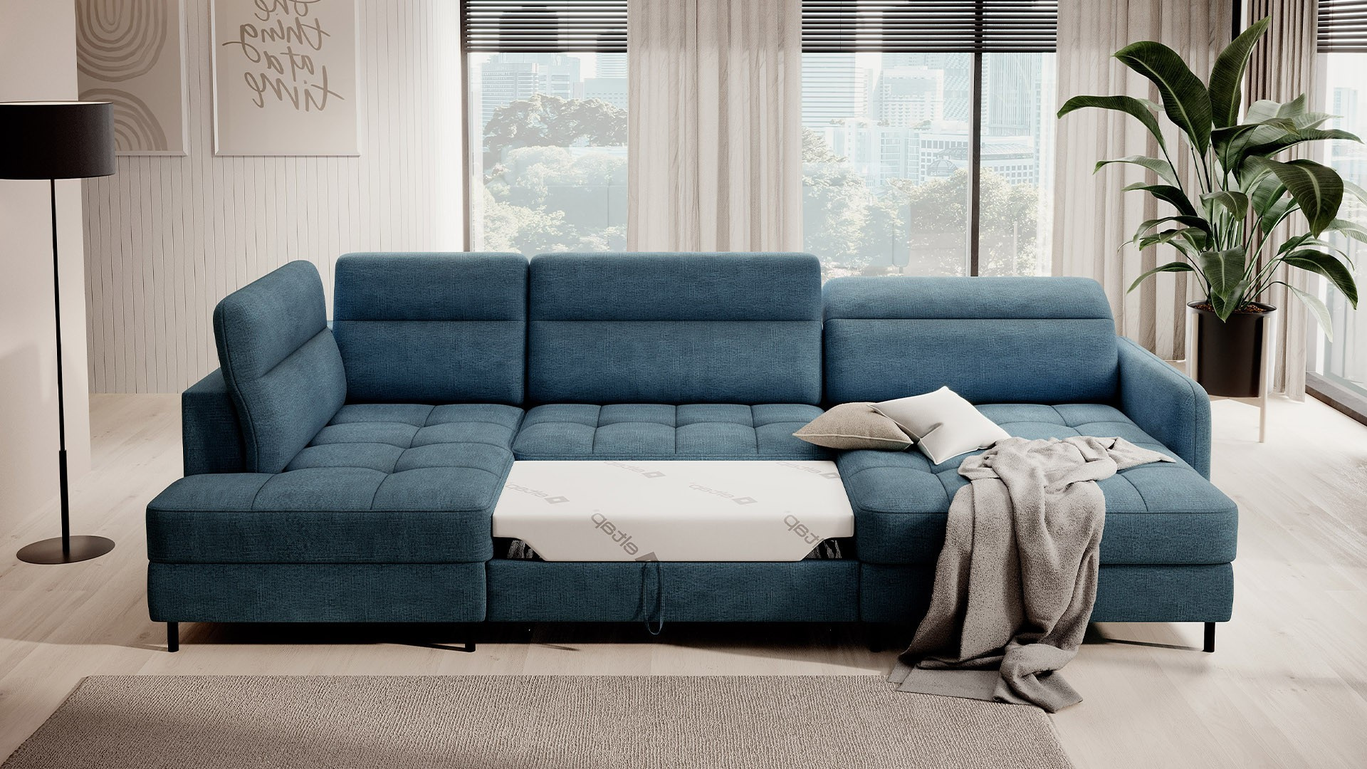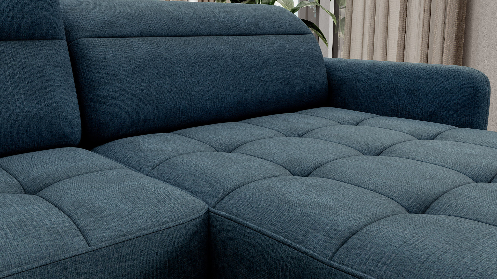 Rohová pohovka Berrto je neuvěřitelně elegantní kus nábytku pro váš obývací pokoj, navržený tak, aby vám poskytl výjimečné pohodlí a funkčnost. Tato elegantní rohová pohovka kombinuje moderní design s použitím vysoce kvalitních komponentů. Rohová pohovka Berrto je vybavena vlnovými pružinami typu B, které v kombinaci s vysoce elastickou pěnou HR + T2130 vytvářejí povrch s bezkonkurenčním komfortem. Tento kus nábytku je měkký, flexibilní a dokonale se přizpůsobí tvaru vašeho těla, což poskytuje nejen relaxaci, ale také úlevu svalům. Použití čalounických popruhů a pěny T2130 v opěradle rohové pohovky Berrto zajišťuje její odolnost a odolnost vůči deformacím. Nemusíte se obávat nevzhledných vrásek - tato rohová pohovka si zachová svůj původní vzhled po mnoho let. Můžete jej rychle a snadno přeměnit na pohodlnou postel, která vám i vašim hostům poskytne klidný spánek. Navíc rohová pohovka skrývá prostorný úložný prostor na ložní prádlo, který poskytuje dostatek místa pro všechny potřebné textilie. Rohová pohovka Berrto nabízí nejen pohodlí, ale také stabilitu. S působivou nosností 390 kg si jej můžete užívat po mnoho let, aniž byste se museli obávat o jeho odolnost. Rohová pohovka Berrto vyniká nejen svou funkčností, ale také estetickým designem. Černé ocelové nohy mu dodávají moderní charakter a elegantní design z něj činí výrazný prvek vaší obývací místnosti. Rohová pohovka Berrto je vybavena snadno použitelným mechanismem typu Dolphin, který umožňuje rychle ji přeměnit na pohodlnou postel. Toto je ideální řešení, když potřebujete prostor na spaní pro hosty. Rohová pohovka Berrto kombinuje luxus, pohodlí a funkčnost. Jeho vysoce kvalitní řemeslné zpracování a pečlivé dokončení z něj činí nejen ústřední bod vašeho obývacího pokoje, ale také místo pro relaxaci a trávení času s přáteli a rodinou.