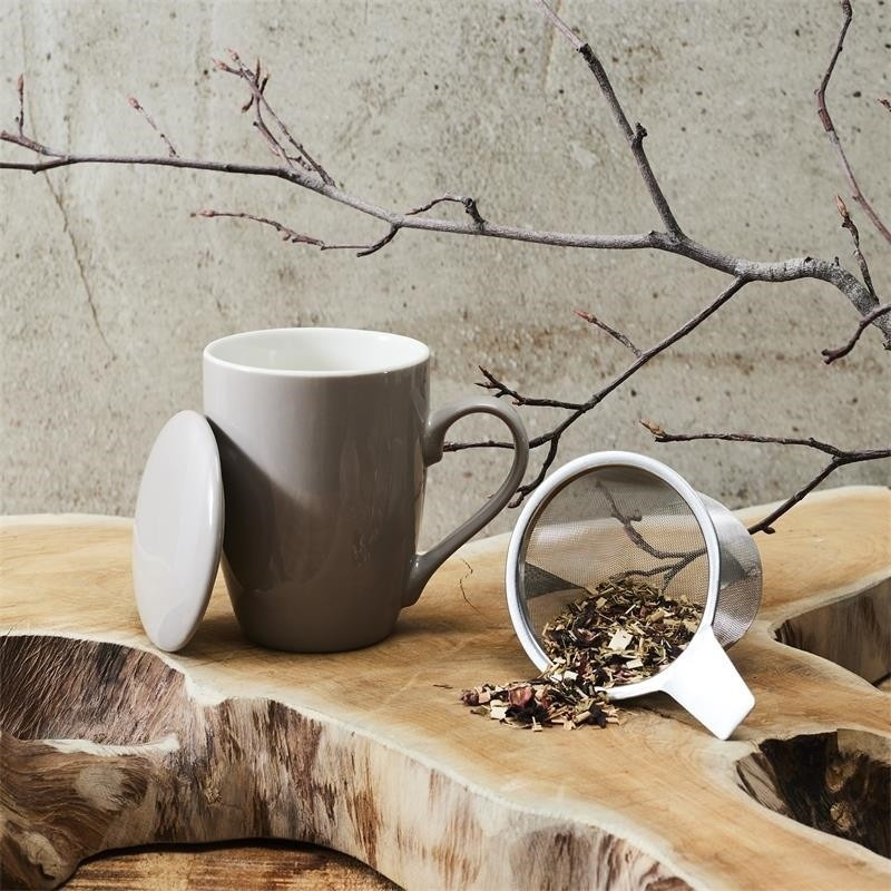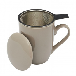 Béžový hrnek Mira s infuzérem a víčkem