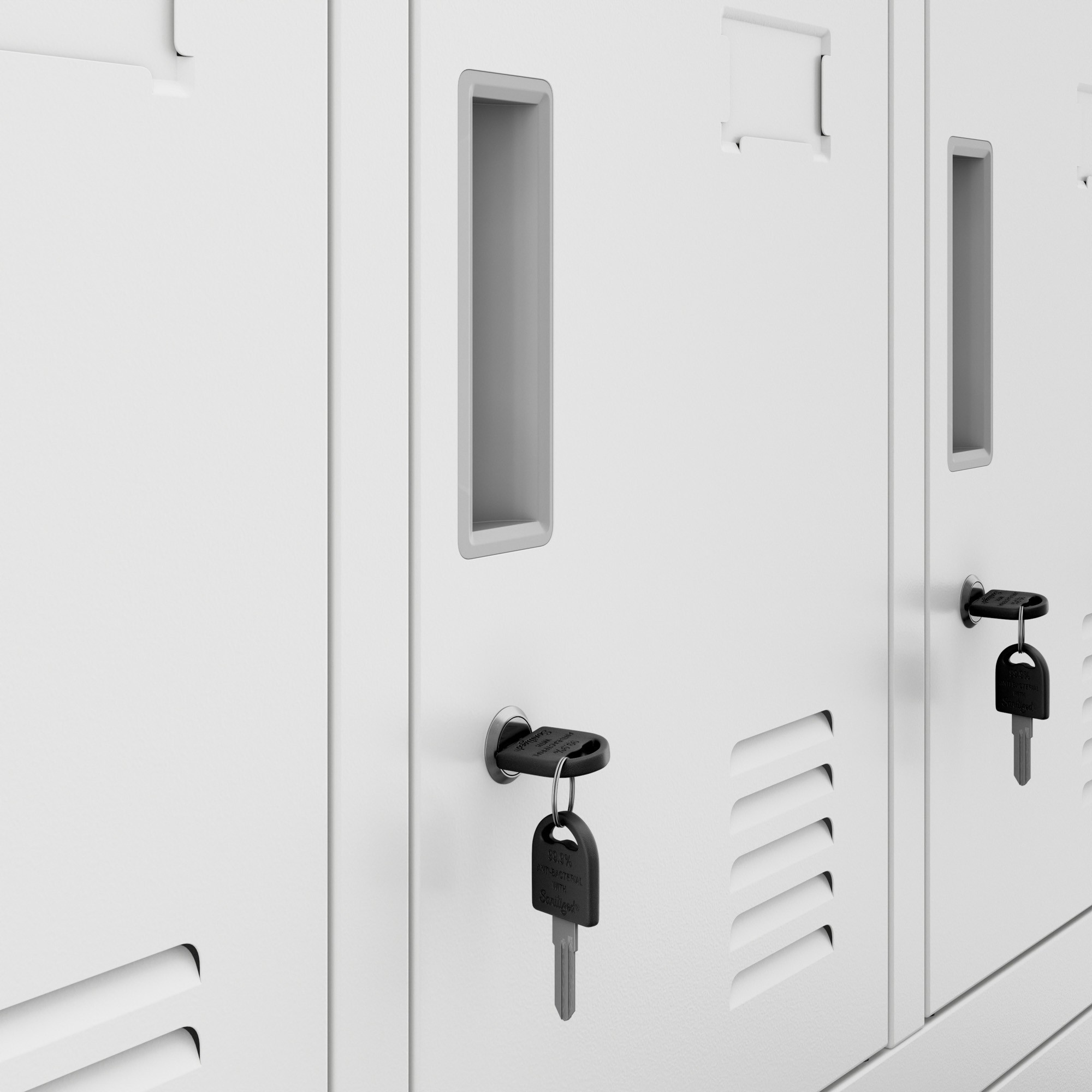 - Bezpečné uzamykání: Každá přihrádka je vybavena individuálním zámkem na klíč, což zajišťuje maximální bezpečnost uložených věcí.