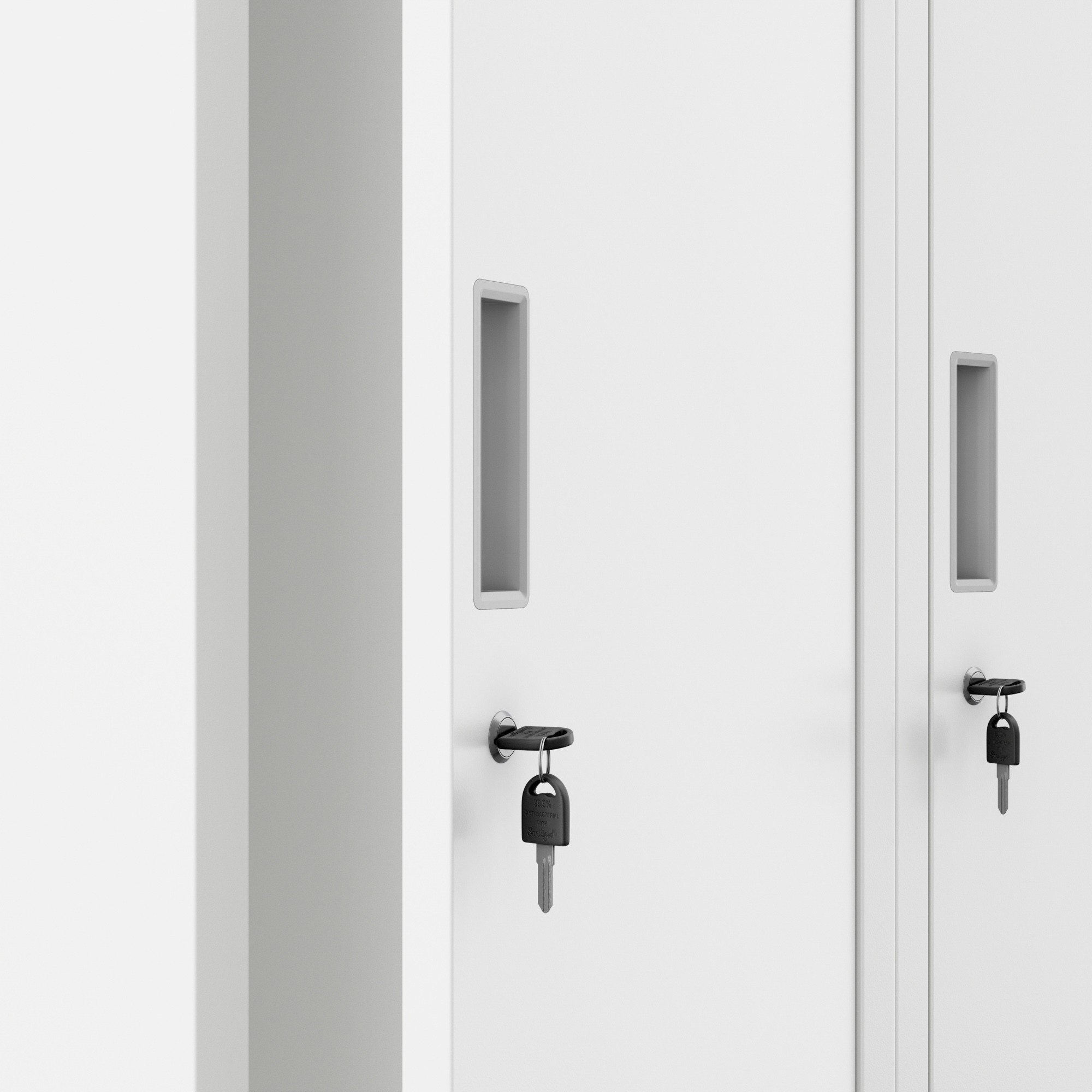 Bezpečnost vašich věcí je pro nás prioritou. Proto je skříň KACPER vybavena uzamykatelnými dveřmi, které chrání uložené předměty před neoprávněným přístupem. Silné zámky zajišťují, že vaše osobní věci, dokumenty nebo cennosti budou v bezpečí. Každá část skříně je uzamykatelná zvlášť, což umožňuje sdílení skříně dvěma osobami s maximálním soukromím.