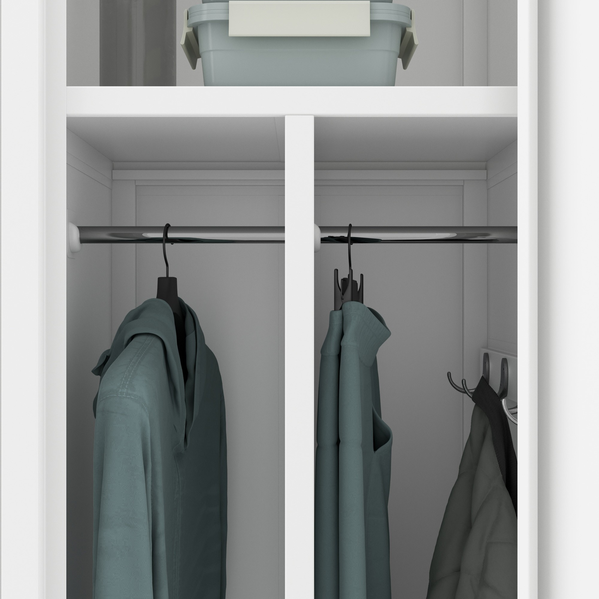 - 2 tyče na ramínka: Umožňují pohodlné zavěšení košil, bund, sak a dalších oděvů, čímž zabraňují jejich pomačkání.