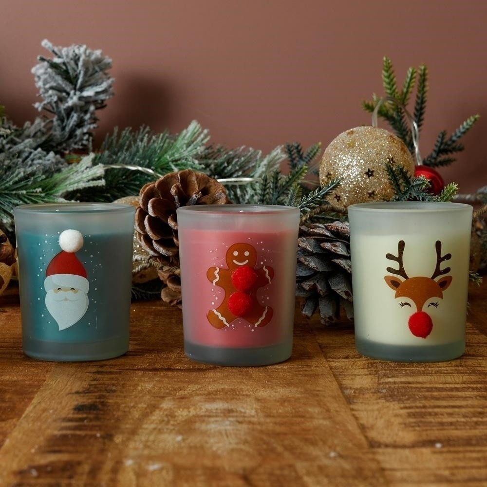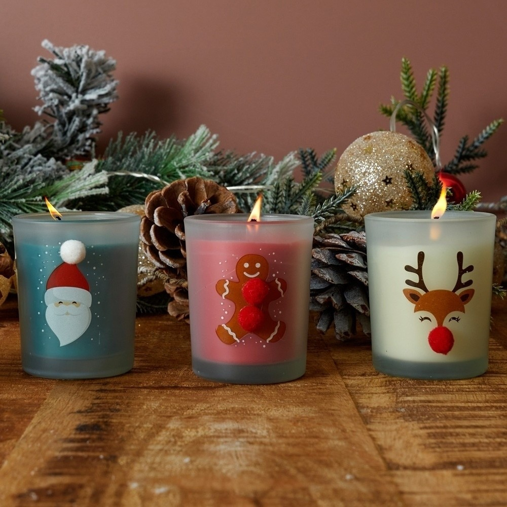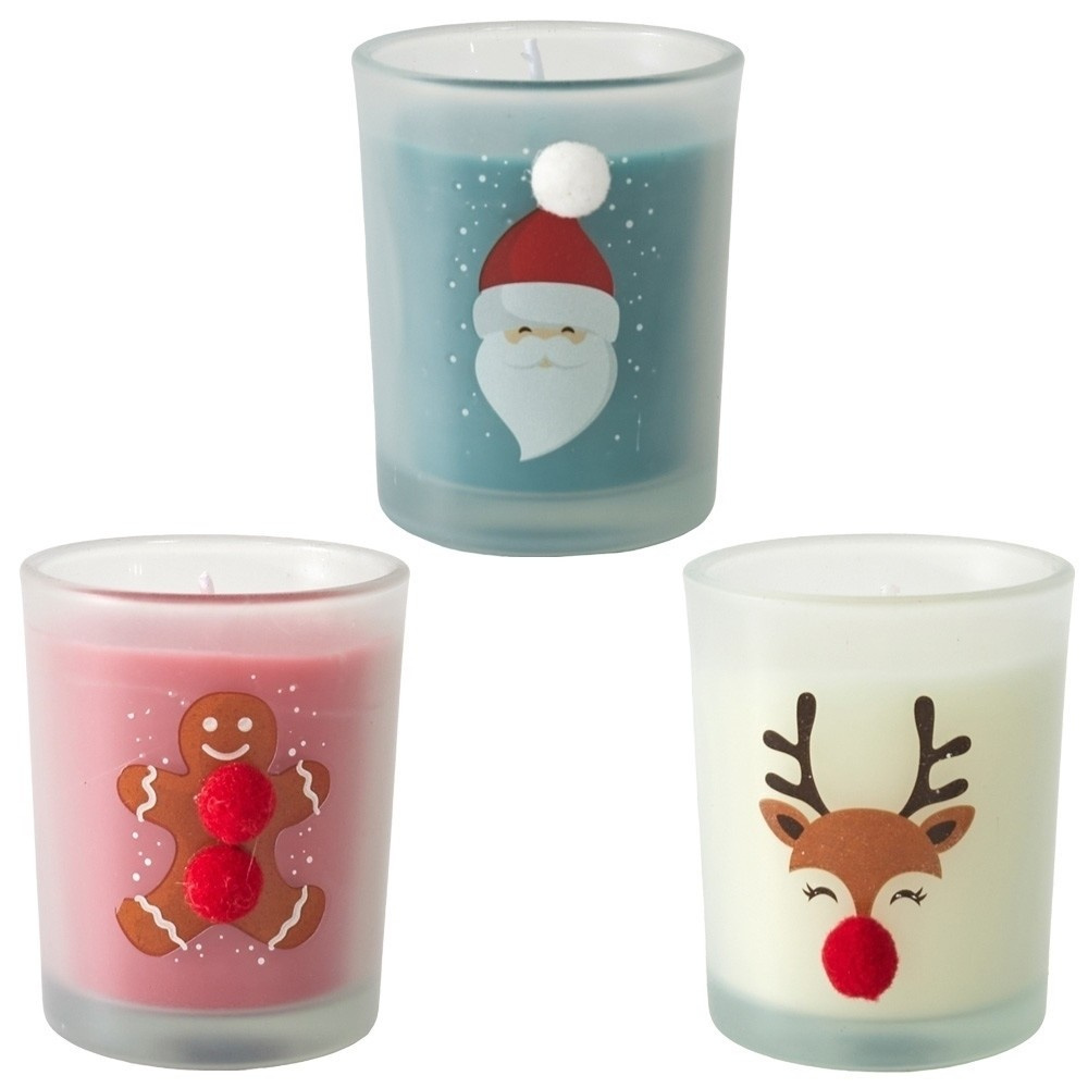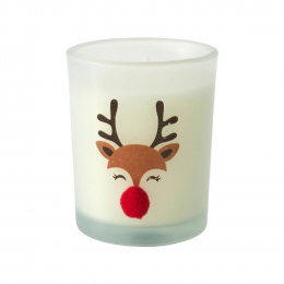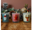 Vánoční svíčka s vánoční vůní. Vonná svíčka v poloprůhledném skleněném svícnu. Sklo svíčky vypadá jako ojíněné, což jí dodává sváteční kouzlo. Vánoční motiv postavy s ozdobným filcovým pomponem. Vůně k výběru: bílá: stromeček, červená: skořice nebo zelená: vanilka, Bavlněný knot, parafín Doba hoření: 8 hodin. Rozměry: 5x5x6 cm Hmotnost 45 g.