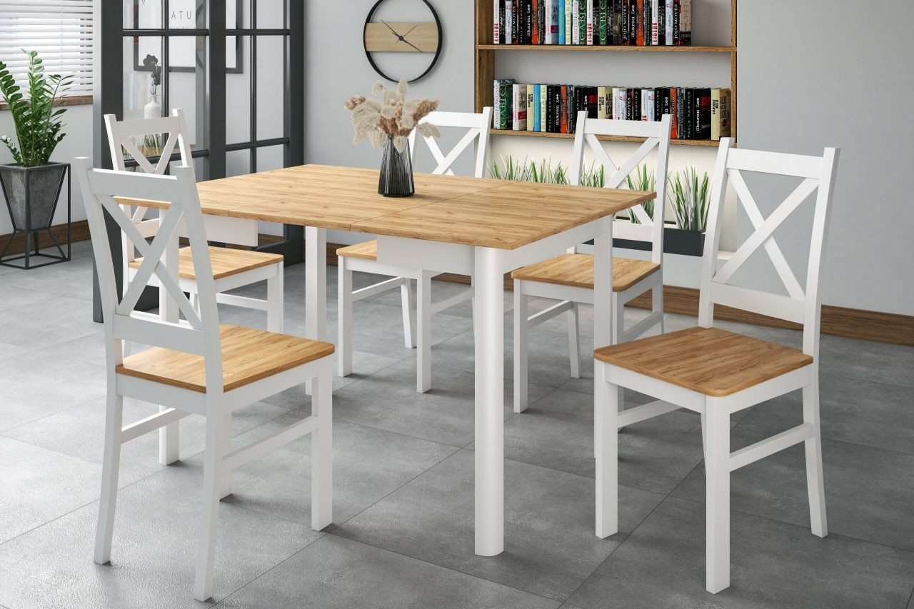 Rozměry: - šířka sedáku: 42 cm - výška sedáku: 48 cm - celková výška: 94 cm - hloubka sedáku: 40 cm Barva: - sedák: dub zlatý craft - konstrukce: bílá