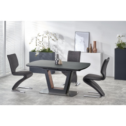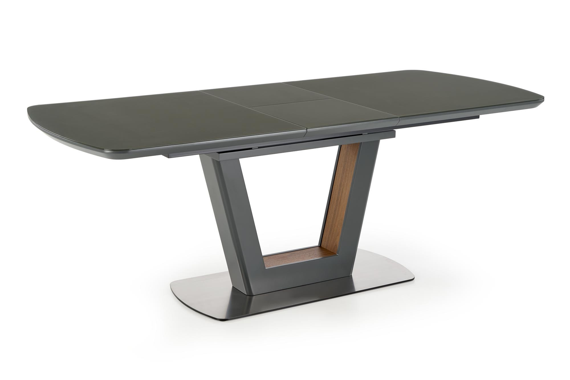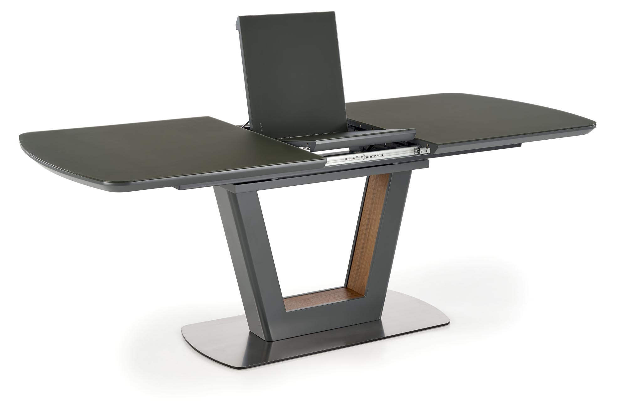 rozměry: 160÷200/90/76 cm, rozkládací stůl, materiál: sklo / lakovaná MDF / laminovaná MDF / nerezová ocel, barva: antracit mat - ořech