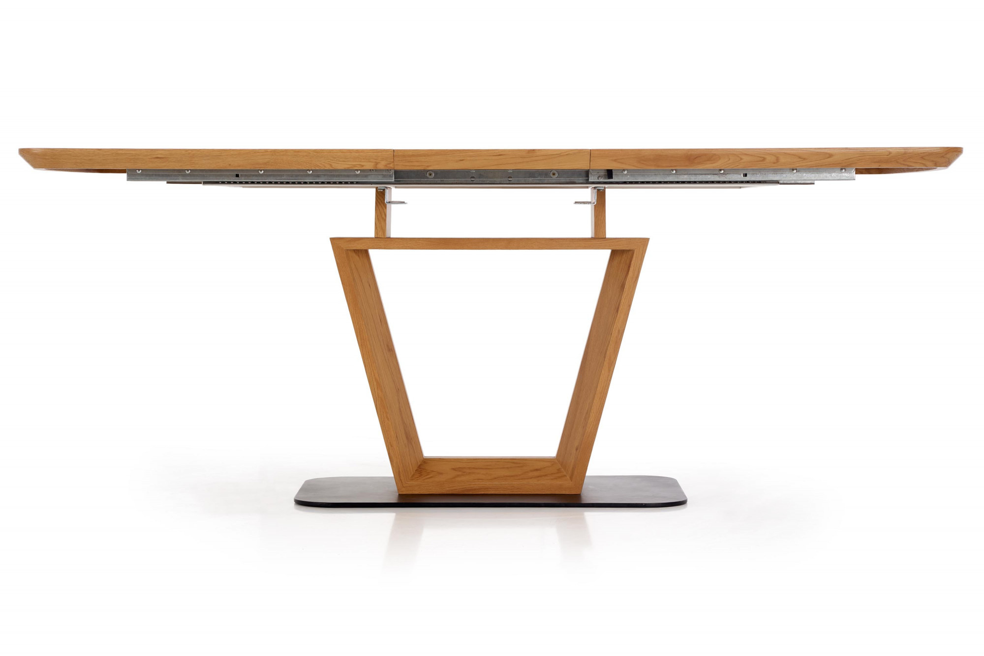 rozkládací stůl, rozměry: 160-220/90/76 cm, materiál: laminovaná MDF / práškově lakovaná ocel, barva: zlatý dub - černá