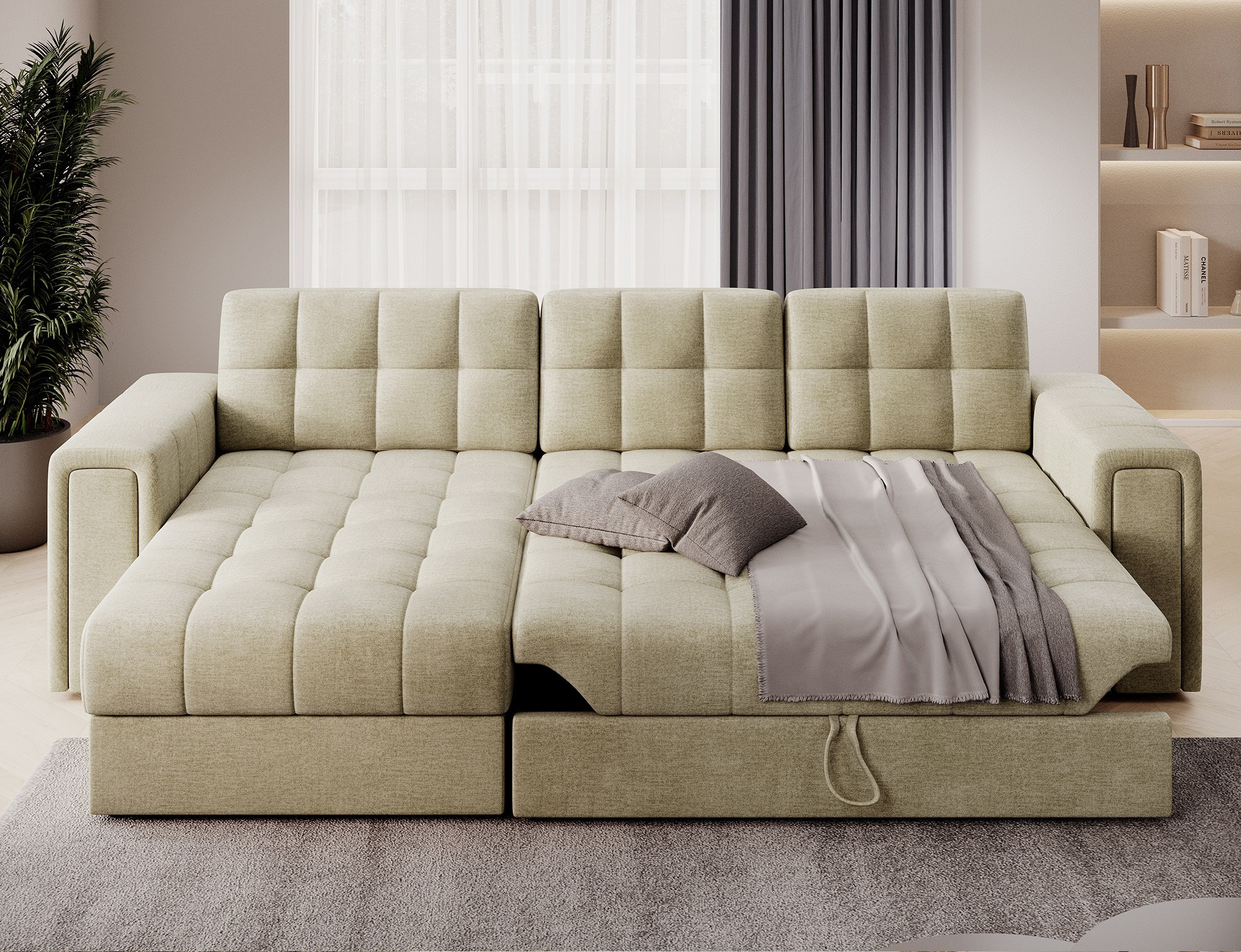 - Úložný prostor: Sedací souprava BLENVI je vybavena praktickým úložným prostorem, který je ideální pro uschování přikrývek, polštářů nebo dalších nezbytností, které chcete mít po ruce, ale zároveň je mít úhledně uklizené.