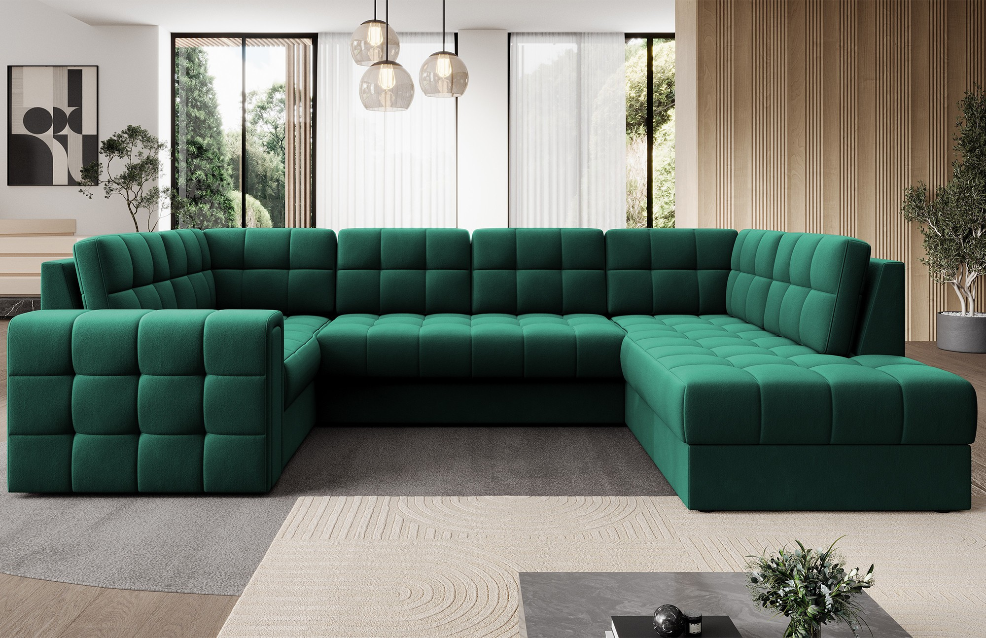 Moderní rohová rozkládací pohovka Blewett 299x198x82 cm je ideální volbou pro ty, kteří hledají elegantní a pohodlnou rohovou pohovku do svého obývacího pokoje.Rohová pohovka Blewett vyniká pohodlným sedákem vyrobeným z vlnových pružin typu B a polyuretanových pěn T2540 a T2130, což zajišťuje dlouhotrvající pohodlí a odolnost.Opěradlo je vyplněno pěnovou výplní, která se dokonale přizpůsobí tvaru zad, čímž zvyšuje komfort relaxace.Rohová sedací souprava Blewett v obývacím pokoji je vybavena spací funkcí typu Dolphin, která umožňuje rychlé rozložení, a praktickým úložným prostorem na lůžkoviny—ideální pro skladování.Tato moderní rohová pohovka Blewett má čalouněné opěradlo, díky čemuž vypadá skvěle v jakékoli části místnosti.Robustní černé plastové nohy zdůrazňují moderní styl pohovky.Vysoce kvalitní řemeslné zpracování, funkčnost a módní design činí z Blewettu vynikající rozkládací pohovku, která splňuje očekávání i těch nejnáročnějších uživatelů.