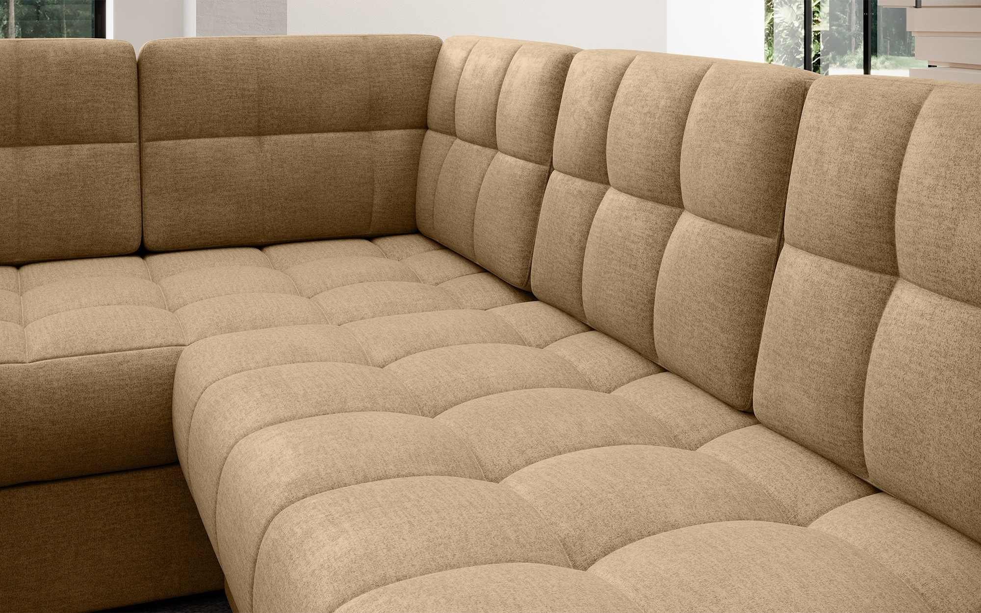 Moderní rohová rozkládací pohovka Blewett 299x198x82 cm je ideální volbou pro ty, kteří hledají elegantní a pohodlnou rohovou pohovku do svého obývacího pokoje.Rohová pohovka Blewett vyniká pohodlným sedákem vyrobeným z vlnových pružin typu B a polyuretanových pěn T2540 a T2130, což zajišťuje dlouhotrvající pohodlí a odolnost.Opěradlo je vyplněno pěnovou výplní, která se dokonale přizpůsobí tvaru zad, čímž zvyšuje komfort relaxace.Rohová sedací souprava Blewett v obývacím pokoji je vybavena spací funkcí typu Dolphin, která umožňuje rychlé rozložení, a praktickým úložným prostorem na lůžkoviny—ideální pro skladování.Tato moderní rohová pohovka Blewett má čalouněné opěradlo, díky čemuž vypadá skvěle v jakékoli části místnosti.Robustní černé plastové nohy zdůrazňují moderní styl pohovky.Vysoce kvalitní řemeslné zpracování, funkčnost a módní design činí z Blewettu vynikající rozkládací pohovku, která splňuje očekávání i těch nejnáročnějších uživatelů.