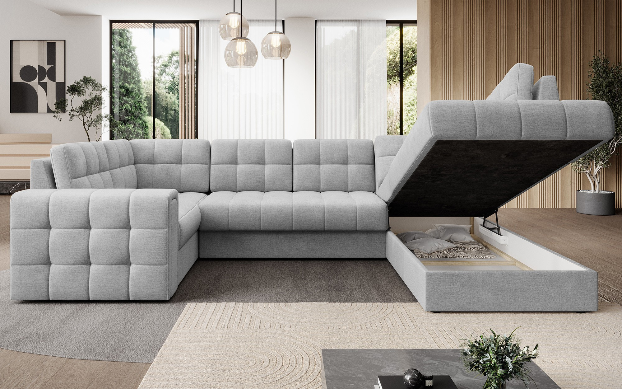 Moderní rohová rozkládací pohovka Blewett 299x198x82 cm je ideální volbou pro ty, kteří hledají elegantní a pohodlnou rohovou pohovku do svého obývacího pokoje.Rohová pohovka Blewett vyniká pohodlným sedákem vyrobeným z vlnových pružin typu B a polyuretanových pěn T2540 a T2130, což zajišťuje dlouhotrvající pohodlí a odolnost.Opěradlo je vyplněno pěnovou výplní, která se dokonale přizpůsobí tvaru zad, čímž zvyšuje komfort relaxace.Rohová sedací souprava Blewett v obývacím pokoji je vybavena spací funkcí typu Dolphin, která umožňuje rychlé rozložení, a praktickým úložným prostorem na lůžkoviny—ideální pro skladování.Tato moderní rohová pohovka Blewett má čalouněné opěradlo, díky čemuž vypadá skvěle v jakékoli části místnosti.Robustní černé plastové nohy zdůrazňují moderní styl pohovky.Vysoce kvalitní řemeslné zpracování, funkčnost a módní design činí z Blewettu vynikající rozkládací pohovku, která splňuje očekávání i těch nejnáročnějších uživatelů.