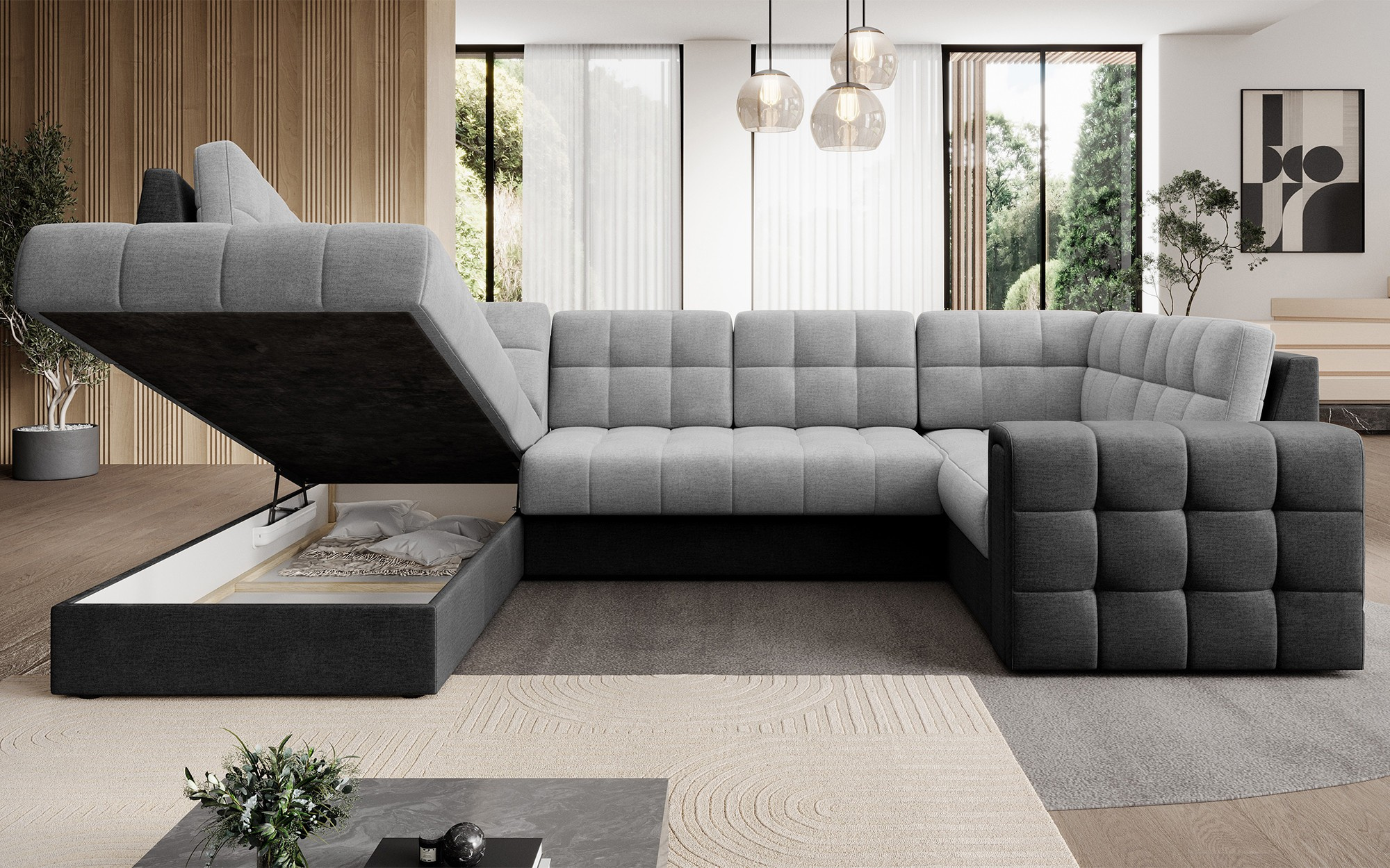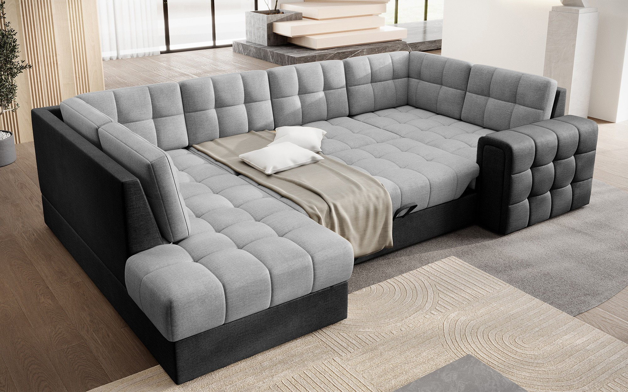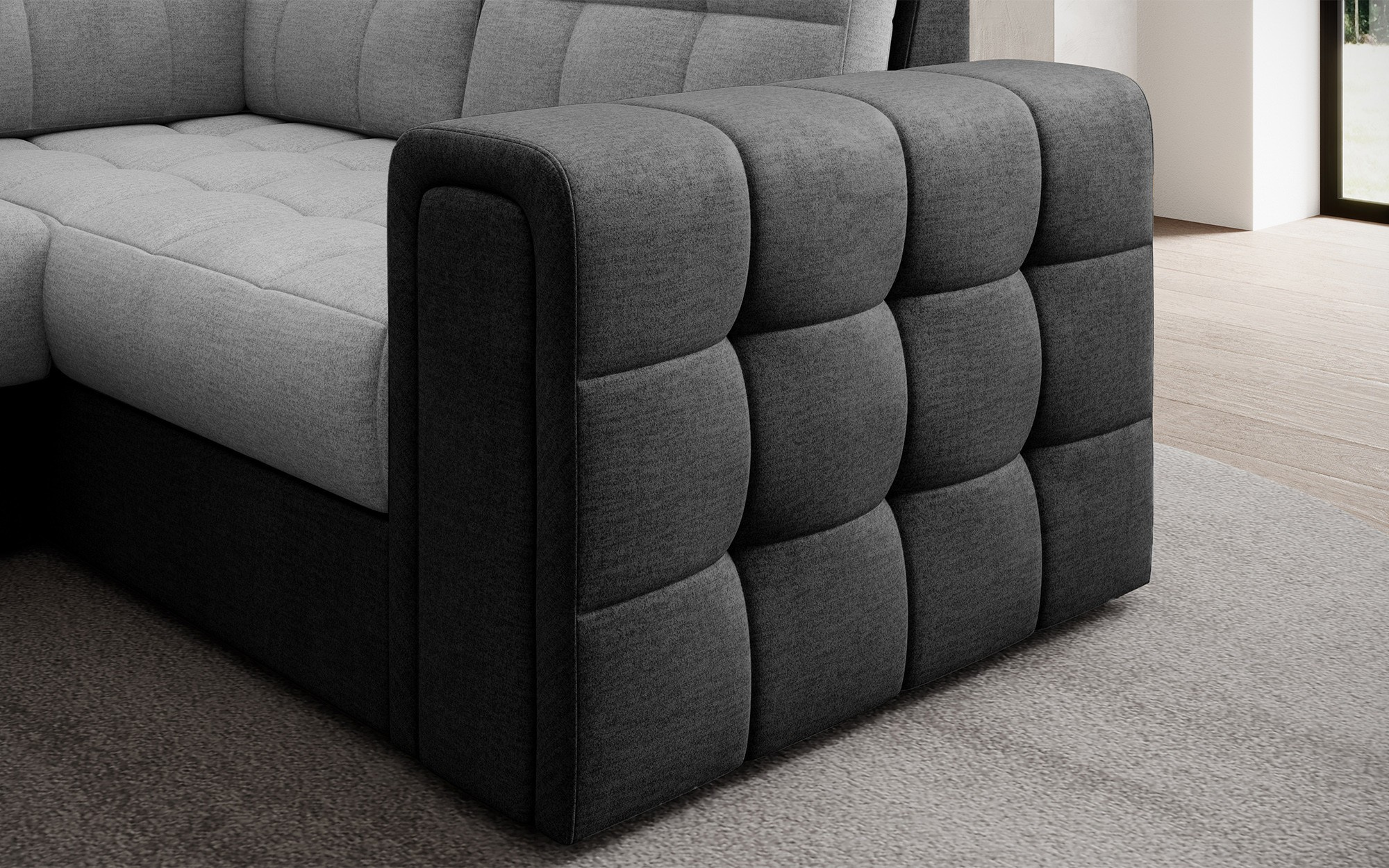 Moderní rohová rozkládací pohovka Blewett 299x198x82 cm je ideální volbou pro ty, kteří hledají elegantní a pohodlnou rohovou pohovku do svého obývacího pokoje.Rohová pohovka Blewett vyniká pohodlným sedákem vyrobeným z vlnových pružin typu B a polyuretanových pěn T2540 a T2130, což zajišťuje dlouhotrvající pohodlí a odolnost.Opěradlo je vyplněno pěnovou výplní, která se dokonale přizpůsobí tvaru zad, čímž zvyšuje komfort relaxace.Rohová sedací souprava Blewett v obývacím pokoji je vybavena spací funkcí typu Dolphin, která umožňuje rychlé rozložení, a praktickým úložným prostorem na lůžkoviny—ideální pro skladování.Tato moderní rohová pohovka Blewett má čalouněné opěradlo, díky čemuž vypadá skvěle v jakékoli části místnosti.Robustní černé plastové nohy zdůrazňují moderní styl pohovky.Vysoce kvalitní řemeslné zpracování, funkčnost a módní design činí z Blewettu vynikající rozkládací pohovku, která splňuje očekávání i těch nejnáročnějších uživatelů.