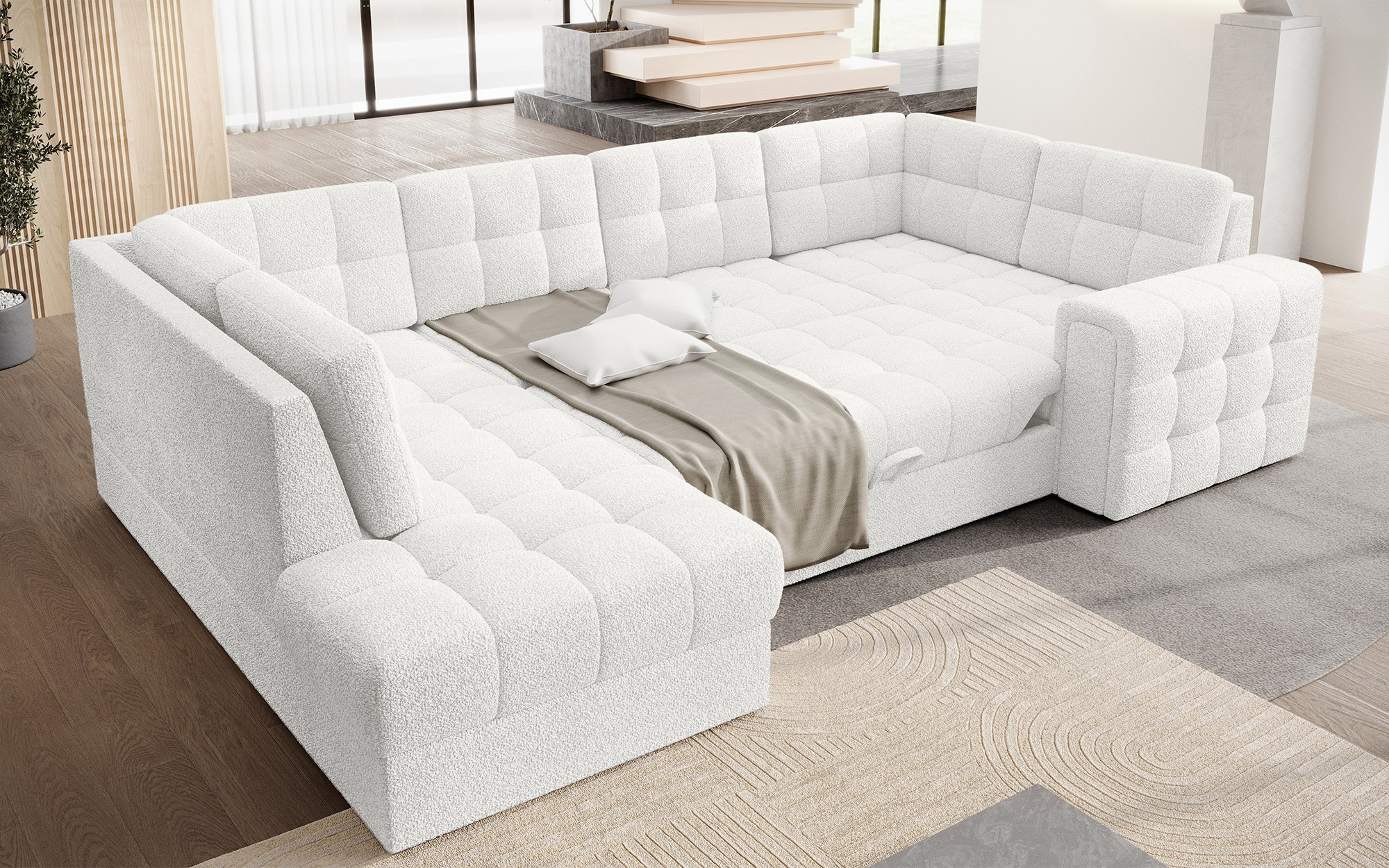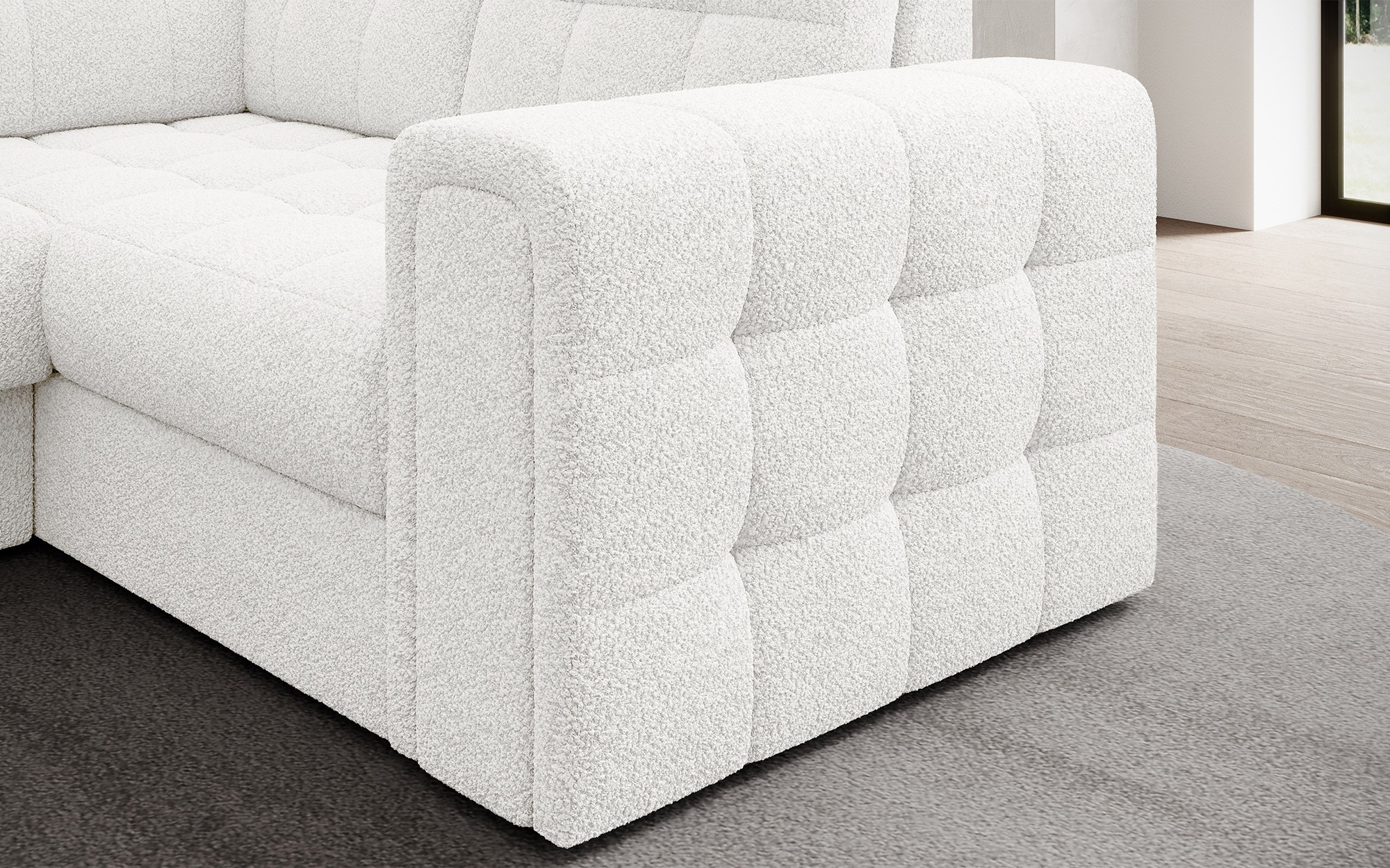 Moderní rohová rozkládací pohovka Blewett 299x198x82 cm je ideální volbou pro ty, kteří hledají elegantní a pohodlnou rohovou pohovku do svého obývacího pokoje.Rohová pohovka Blewett vyniká pohodlným sedákem vyrobeným z vlnových pružin typu B a polyuretanových pěn T2540 a T2130, což zajišťuje dlouhotrvající pohodlí a odolnost.Opěradlo je vyplněno pěnovou výplní, která se dokonale přizpůsobí tvaru zad, čímž zvyšuje komfort relaxace.Rohová sedací souprava Blewett v obývacím pokoji je vybavena spací funkcí typu Dolphin, která umožňuje rychlé rozložení, a praktickým úložným prostorem na lůžkoviny—ideální pro skladování.Tato moderní rohová pohovka Blewett má čalouněné opěradlo, díky čemuž vypadá skvěle v jakékoli části místnosti.Robustní černé plastové nohy zdůrazňují moderní styl pohovky.Vysoce kvalitní řemeslné zpracování, funkčnost a módní design činí z Blewettu vynikající rozkládací pohovku, která splňuje očekávání i těch nejnáročnějších uživatelů.