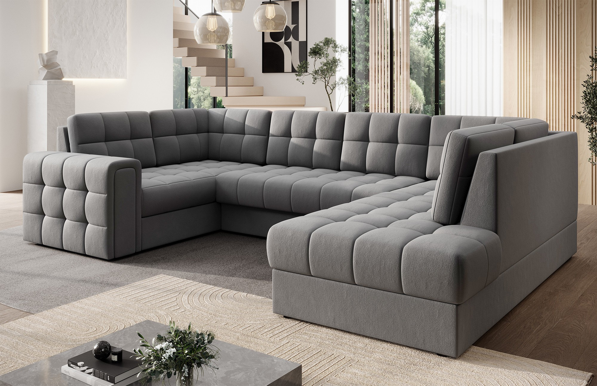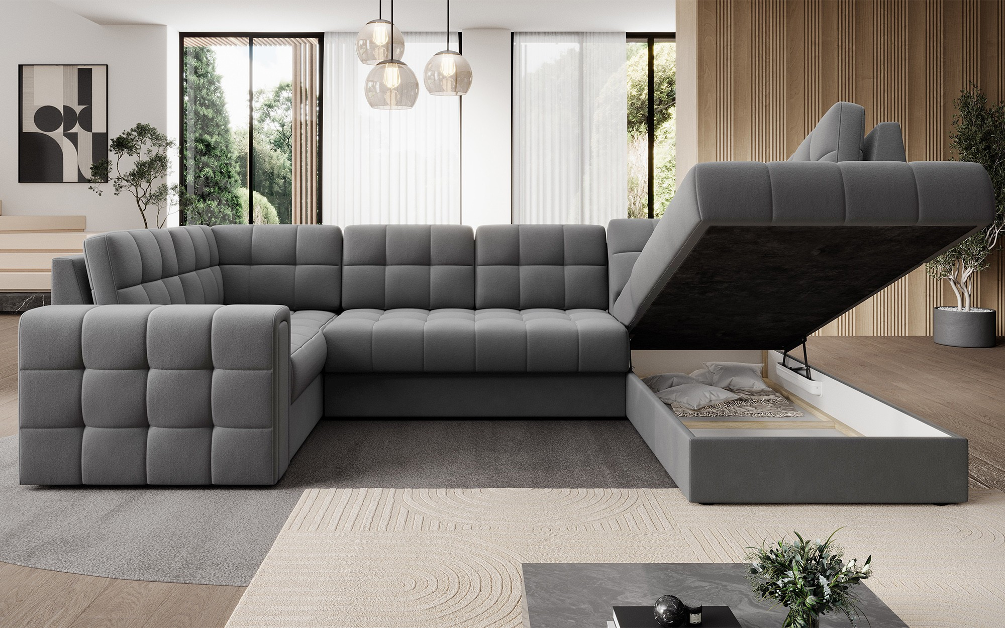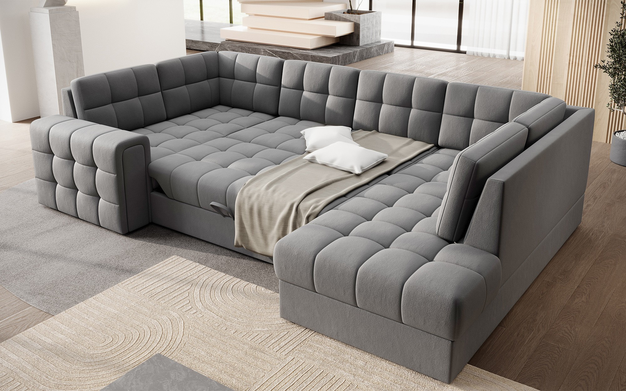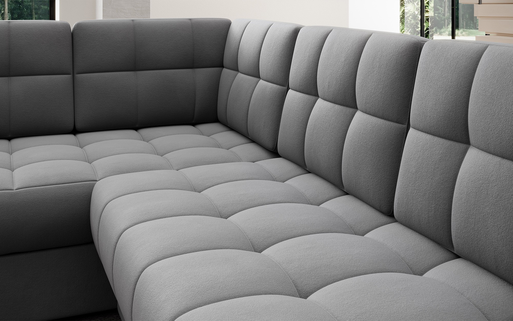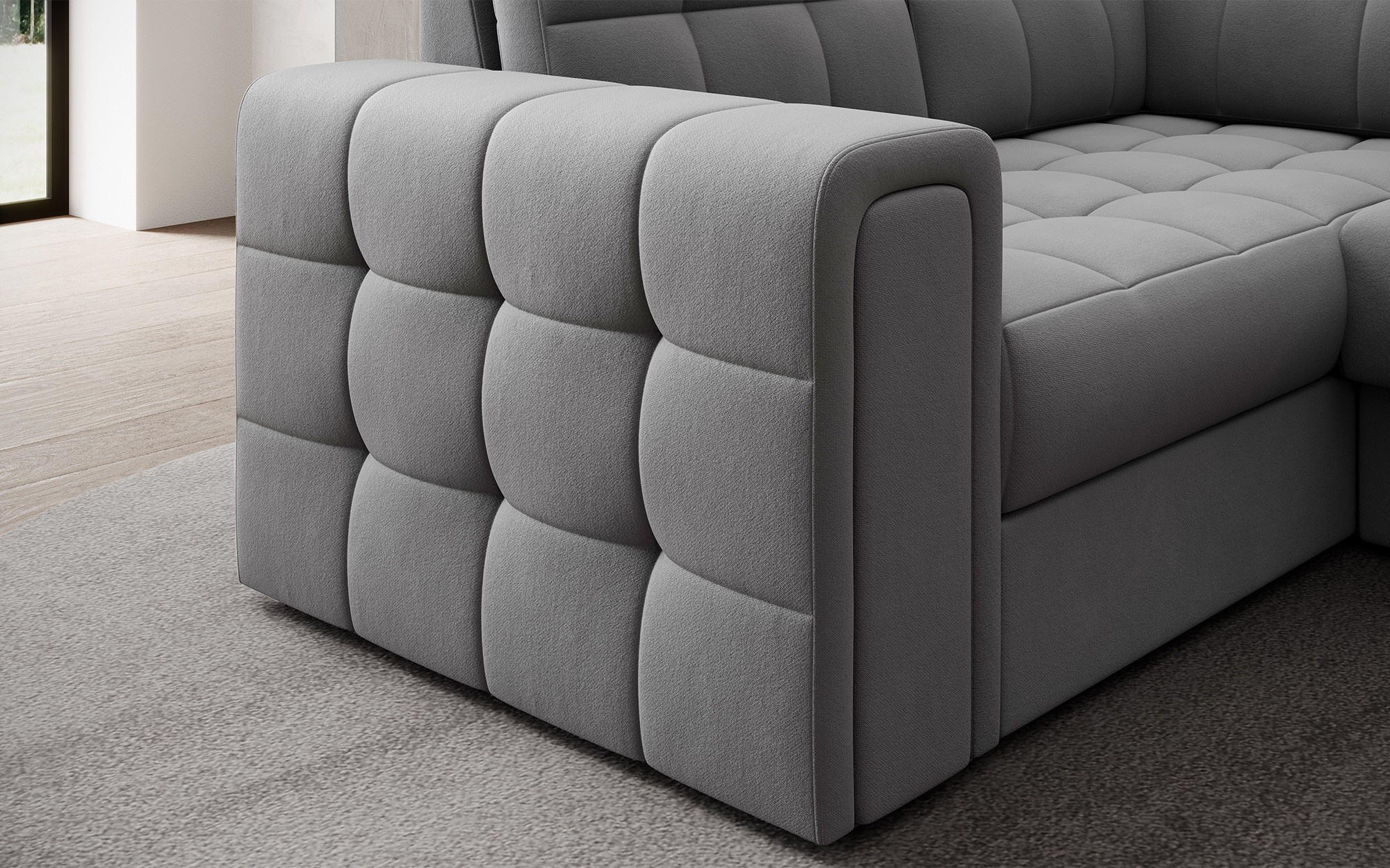Moderní rohová rozkládací pohovka Blewett 299x198x82 cm je ideální volbou pro ty, kteří hledají elegantní a pohodlnou rohovou pohovku do svého obývacího pokoje.Rohová pohovka Blewett vyniká pohodlným sedákem vyrobeným z vlnových pružin typu B a polyuretanových pěn T2540 a T2130, což zajišťuje dlouhotrvající pohodlí a odolnost.Opěradlo je vyplněno pěnovou výplní, která se dokonale přizpůsobí tvaru zad, čímž zvyšuje komfort relaxace.Rohová sedací souprava Blewett v obývacím pokoji je vybavena spací funkcí typu Dolphin, která umožňuje rychlé rozložení, a praktickým úložným prostorem na lůžkoviny—ideální pro skladování.Tato moderní rohová pohovka Blewett má čalouněné opěradlo, díky čemuž vypadá skvěle v jakékoli části místnosti.Robustní černé plastové nohy zdůrazňují moderní styl pohovky.Vysoce kvalitní řemeslné zpracování, funkčnost a módní design činí z Blewettu vynikající rozkládací pohovku, která splňuje očekávání i těch nejnáročnějších uživatelů.