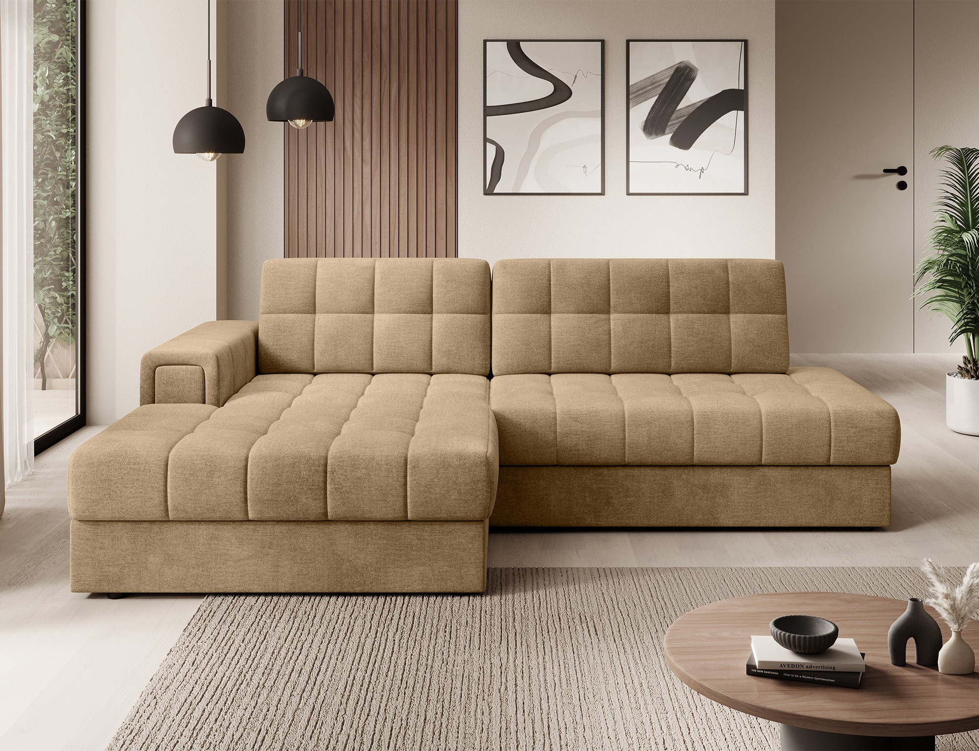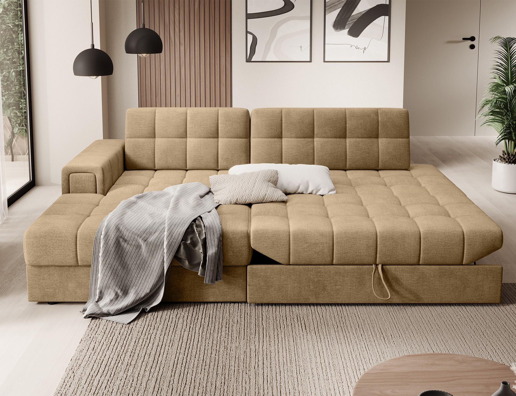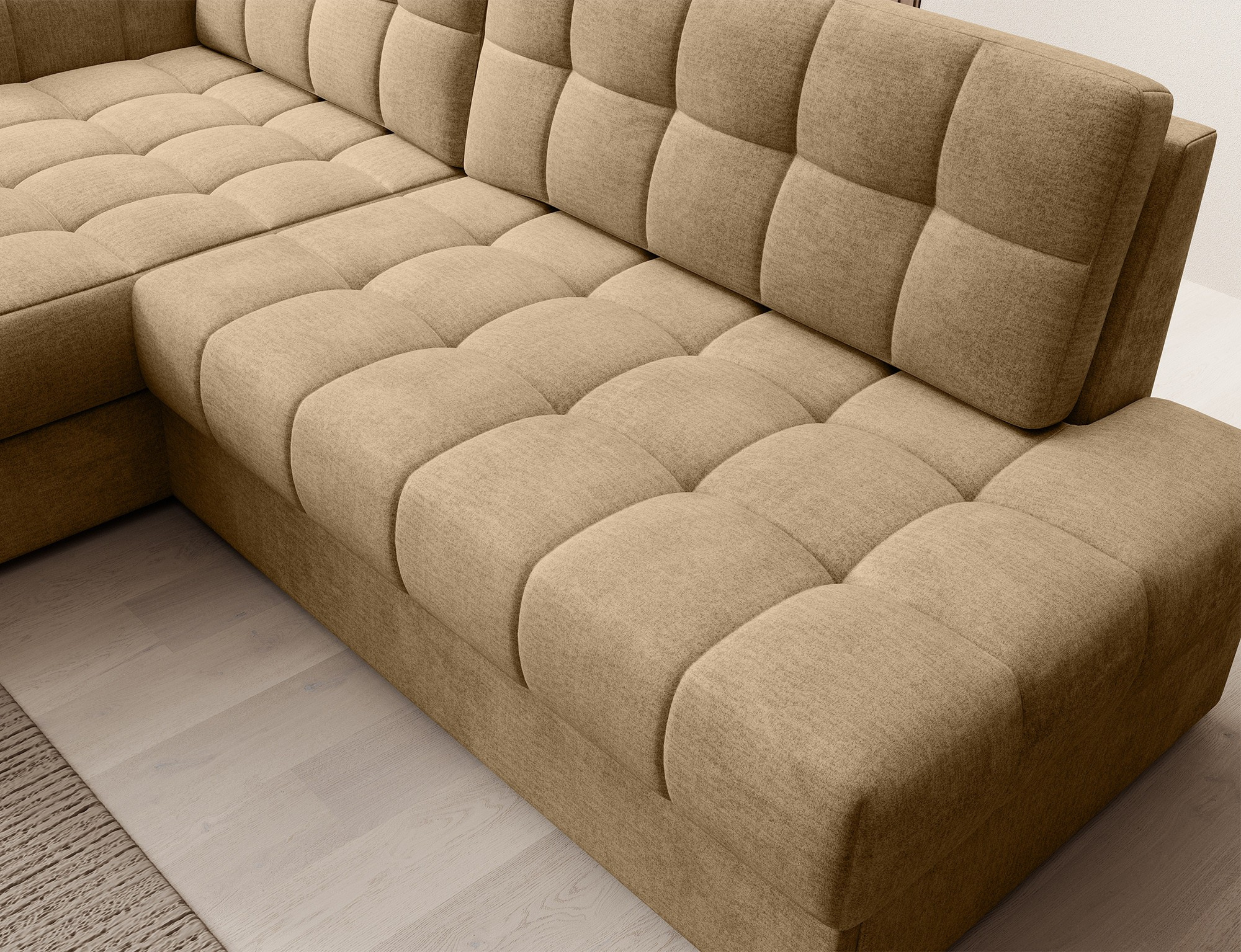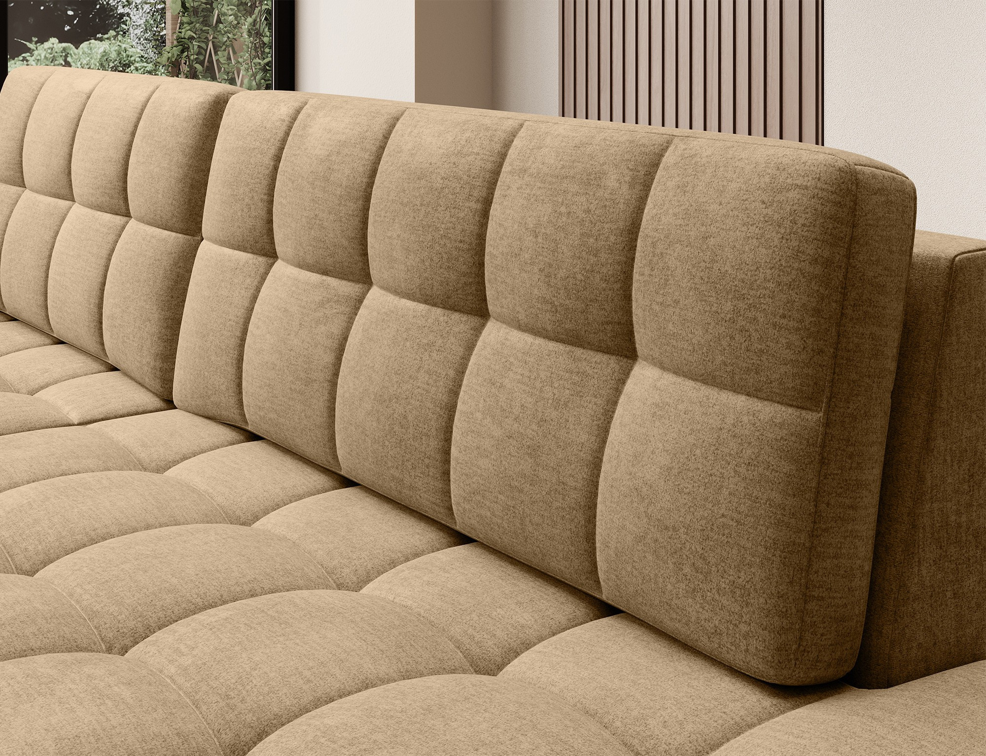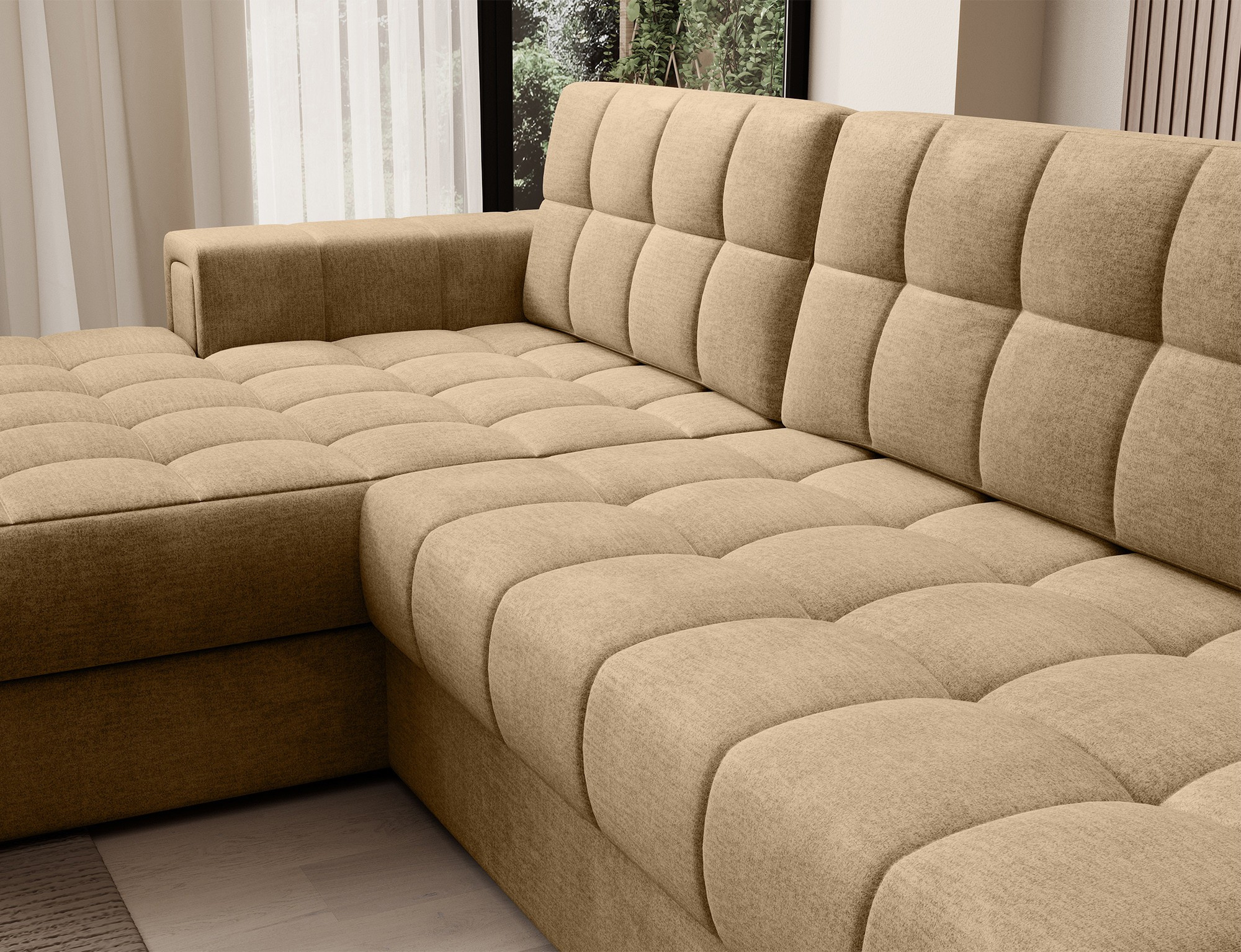 Jedním z hlavních rysů této sedací soupravy je její praktický úložný prostor. Už nikdy nebudete muset řešit, kam uložit deky, polštáře nebo sezónní dekorace. Všechny tyto věci můžete snadno a rychle uschovat do prostorného úložného prostoru, který je diskrétně integrován do designu soupravy.