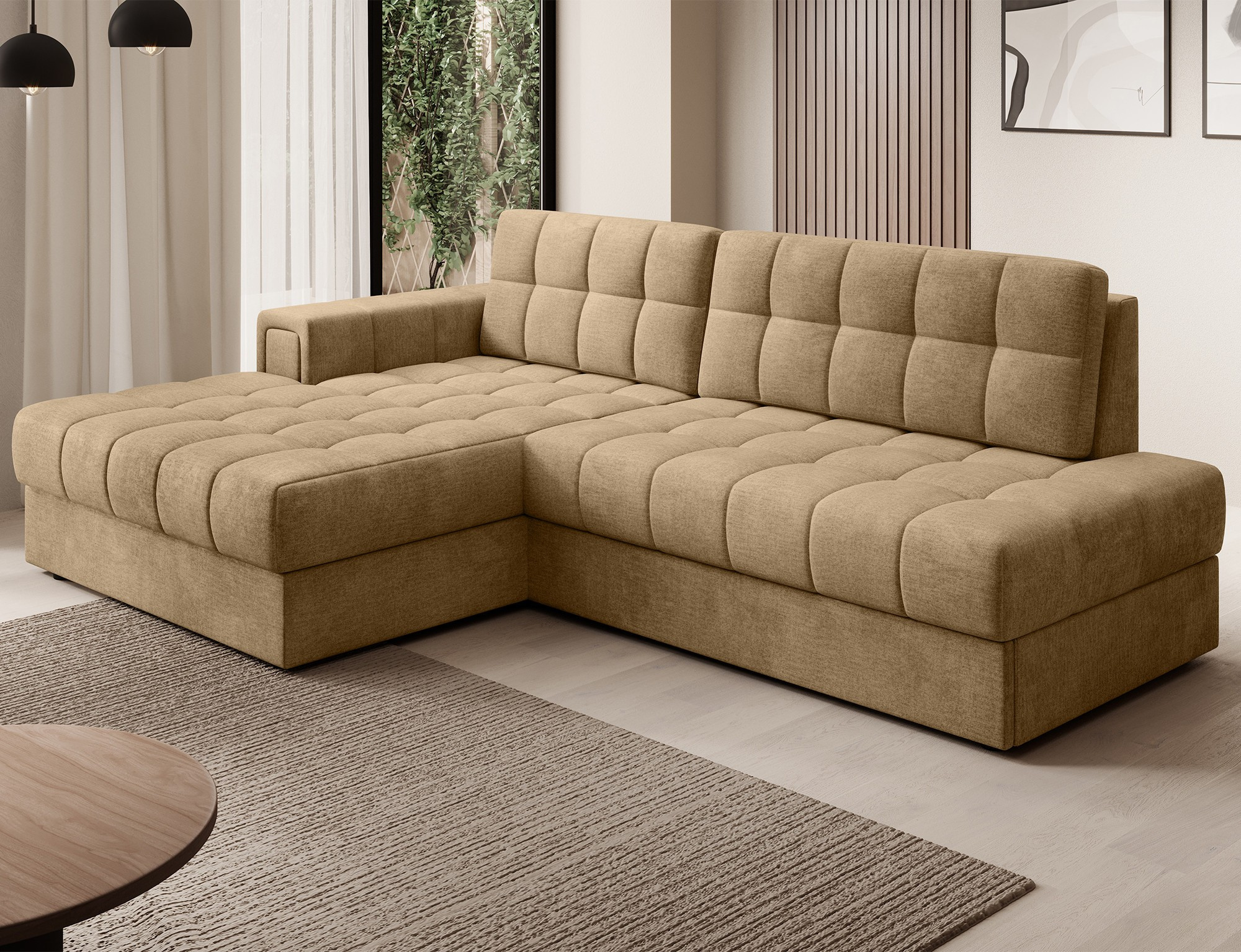 Rohová konstrukce sedací soupravy Blezalt umožňuje efektivní využití prostoru v místnosti. Je ideální pro umístění do rohu obývacího pokoje, čímž uvolníte více místa pro další nábytek nebo volný pohyb.