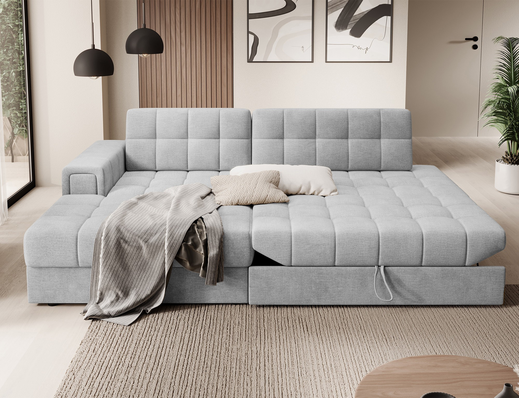 Jedním z hlavních rysů této sedací soupravy je její praktický úložný prostor. Už nikdy nebudete muset řešit, kam uložit deky, polštáře nebo sezónní dekorace. Všechny tyto věci můžete snadno a rychle uschovat do prostorného úložného prostoru, který je diskrétně integrován do designu soupravy.