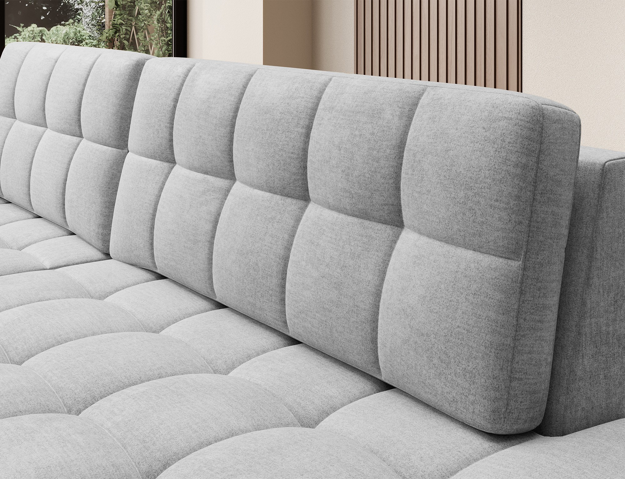 Rohová konstrukce sedací soupravy Blezalt umožňuje efektivní využití prostoru v místnosti. Je ideální pro umístění do rohu obývacího pokoje, čímž uvolníte více místa pro další nábytek nebo volný pohyb.