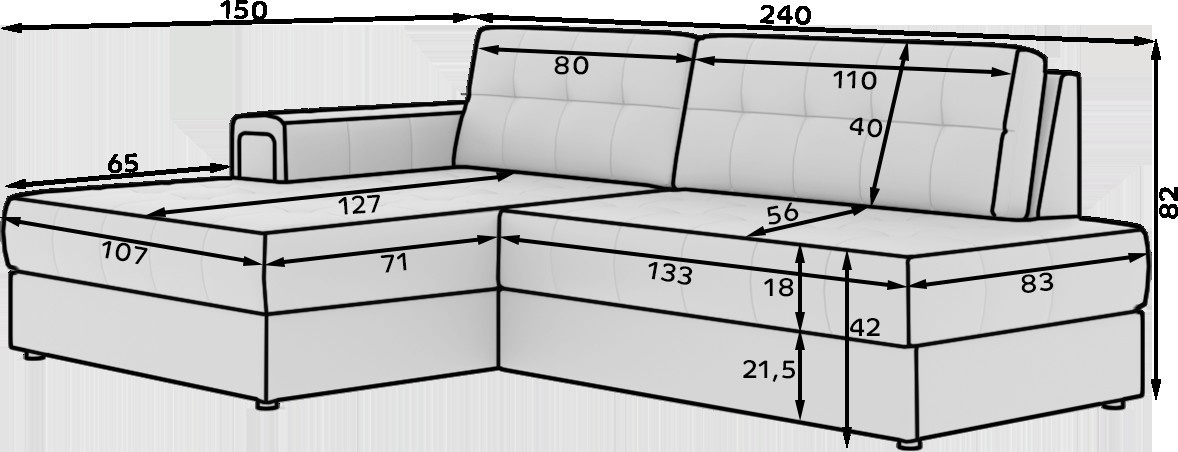 S šířkou 240 cm, výškou 82 cm a hloubkou 150 cm, tato sedací souprava nabízí dostatek prostoru pro celou rodinu. Její elegantní design a kvalitní materiály zaručují, že se stane stylovým doplňkem každého interiéru. Výška sedu 42 cm je optimální pro pohodlné sezení a relaxaci.