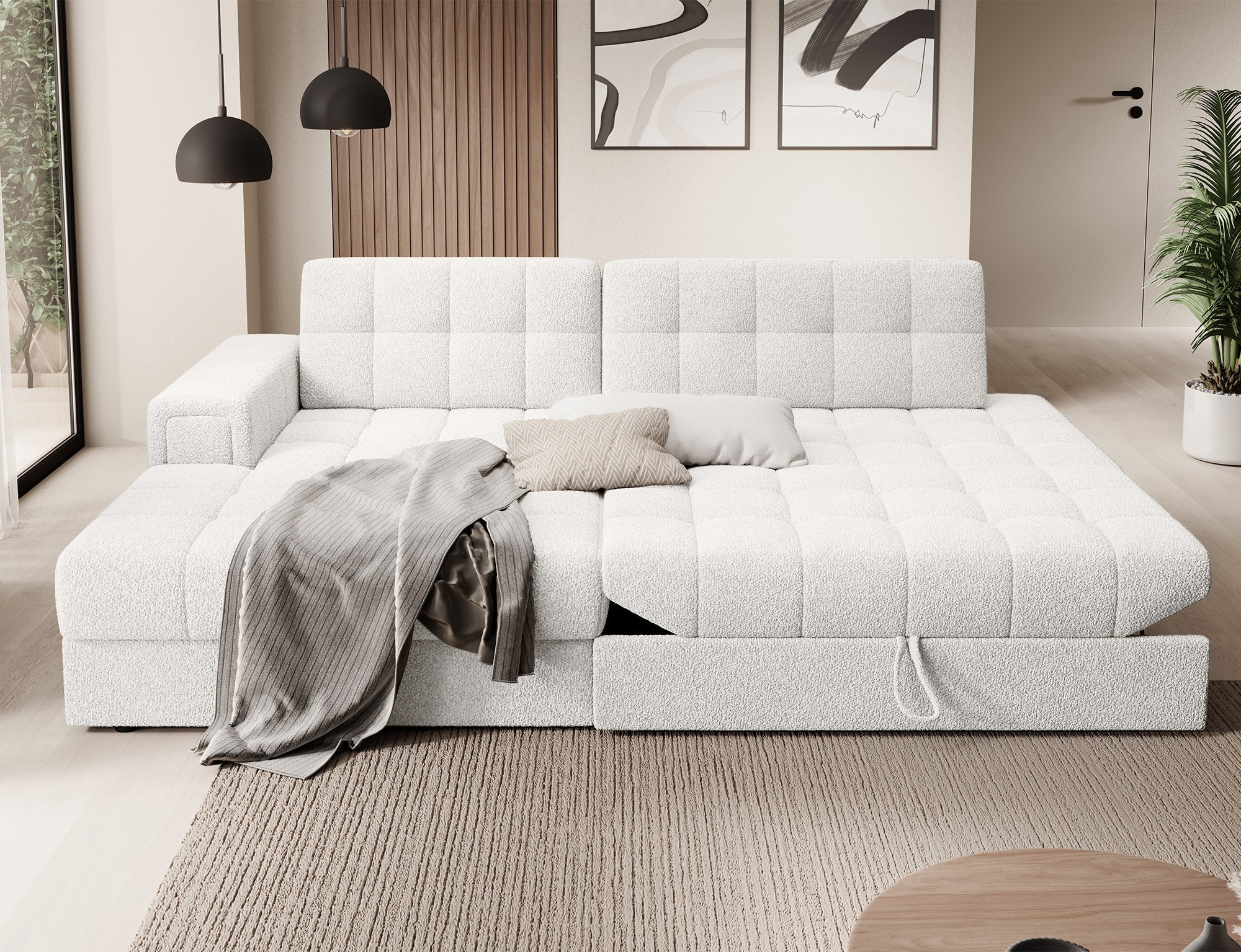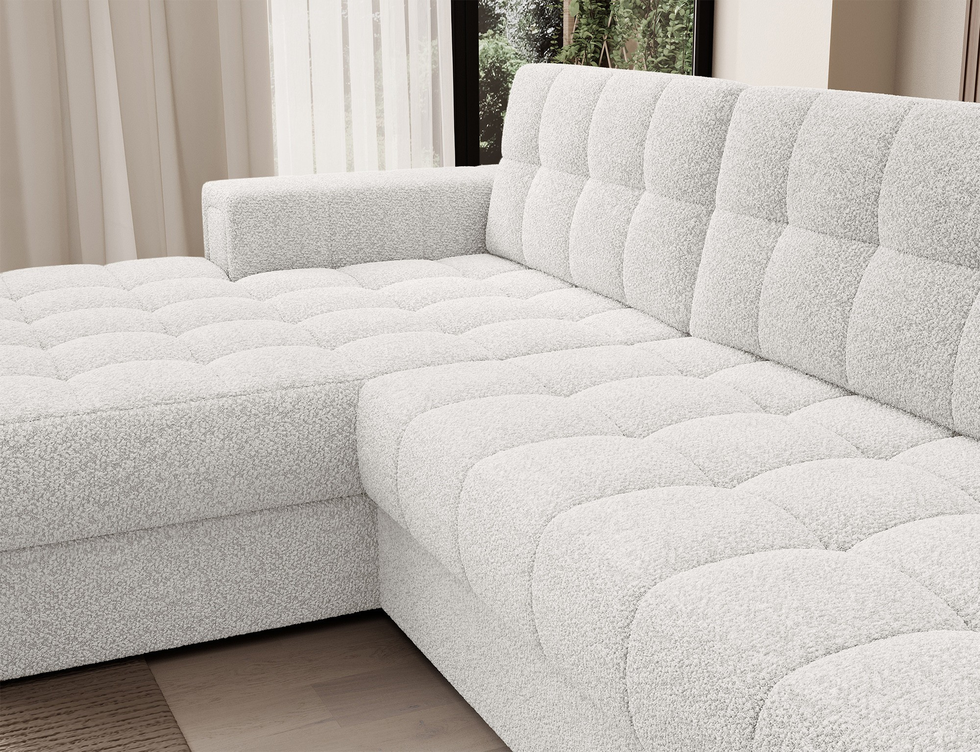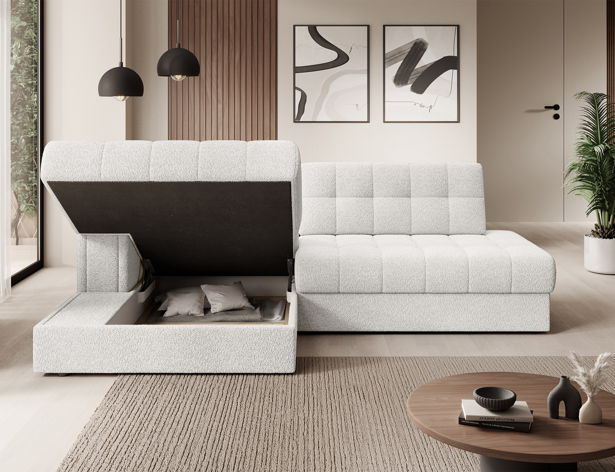 Jedním z hlavních rysů této sedací soupravy je její praktický úložný prostor. Už nikdy nebudete muset řešit, kam uložit deky, polštáře nebo sezónní dekorace. Všechny tyto věci můžete snadno a rychle uschovat do prostorného úložného prostoru, který je diskrétně integrován do designu soupravy.