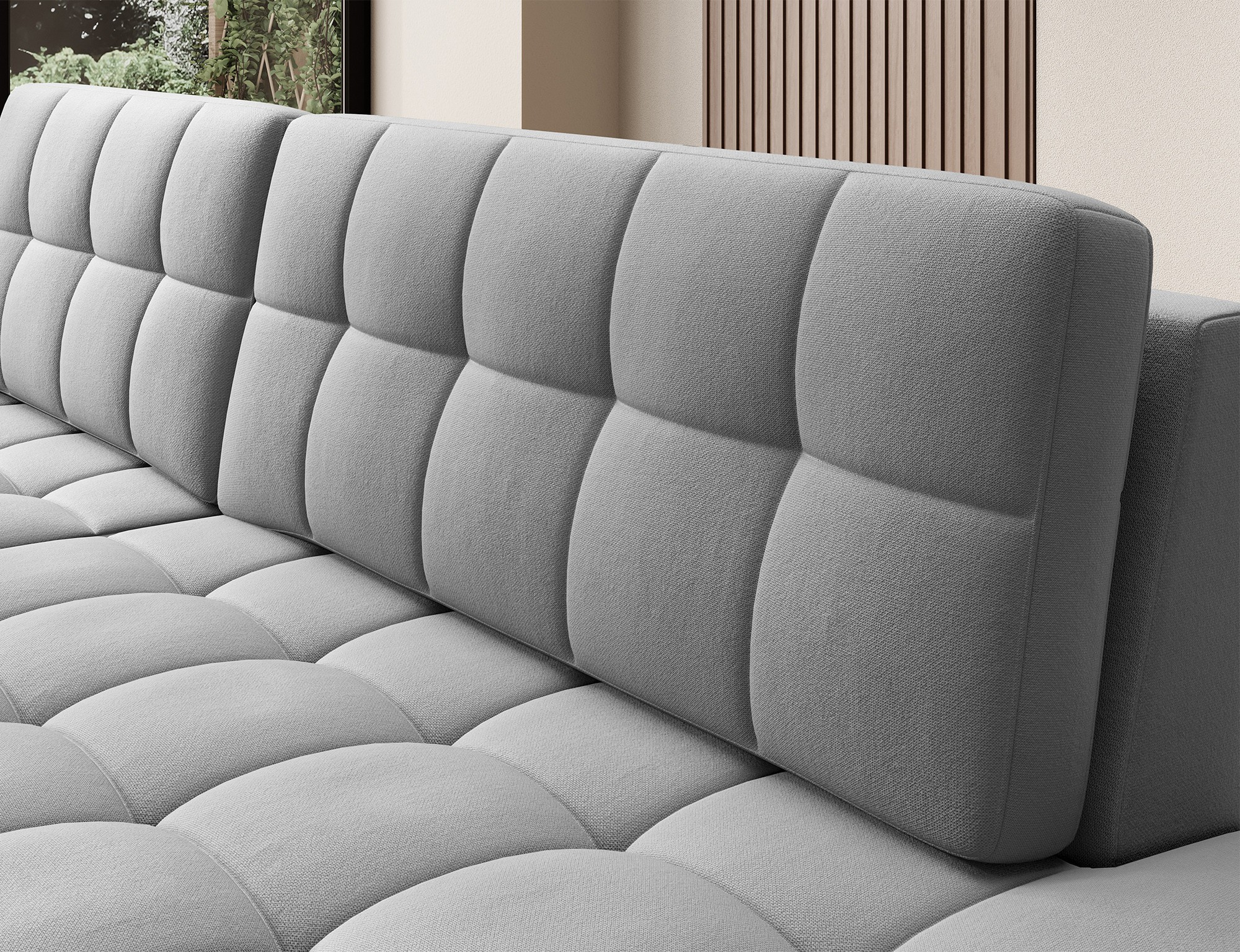 Rohová konstrukce sedací soupravy Blezalt umožňuje efektivní využití prostoru v místnosti. Je ideální pro umístění do rohu obývacího pokoje, čímž uvolníte více místa pro další nábytek nebo volný pohyb.