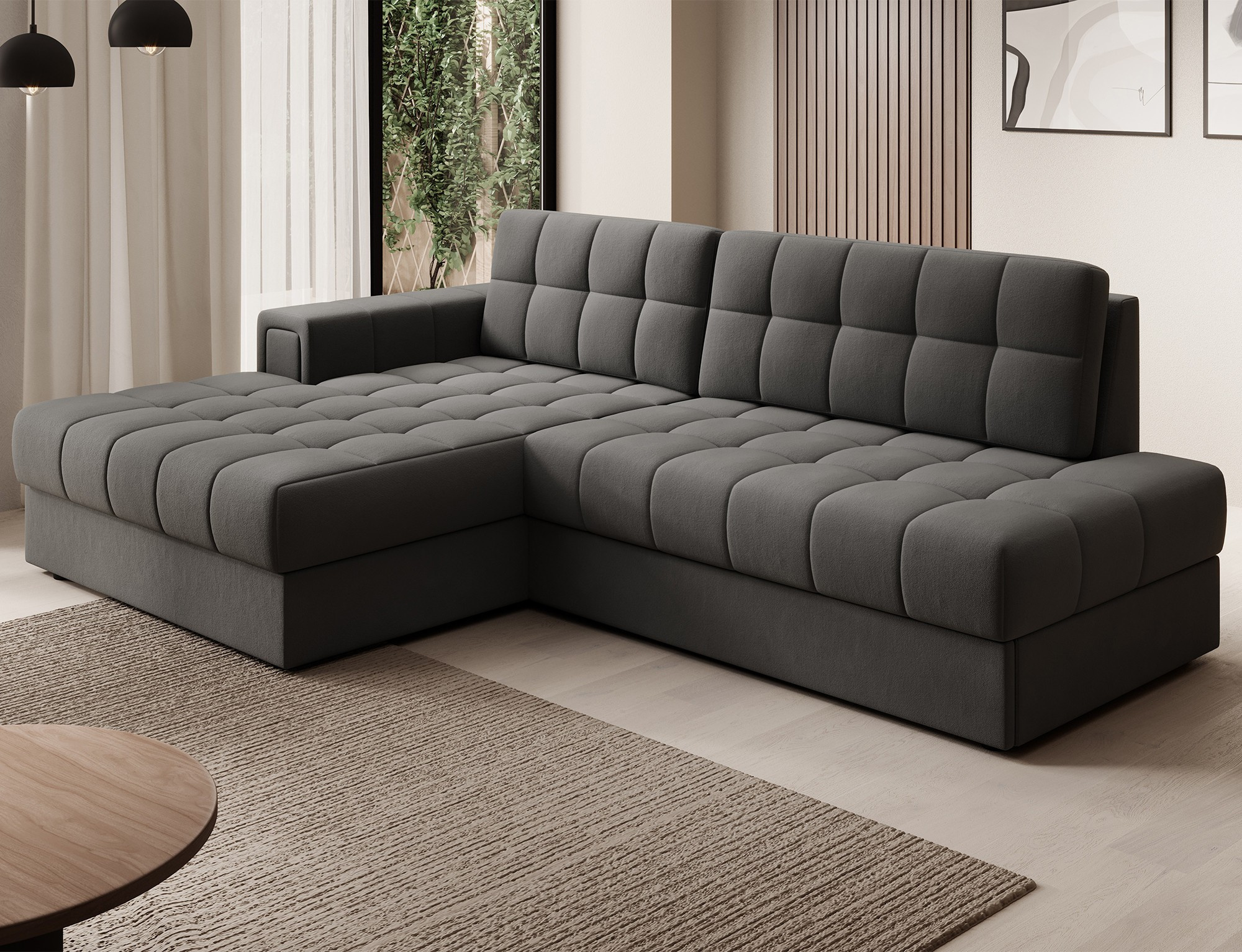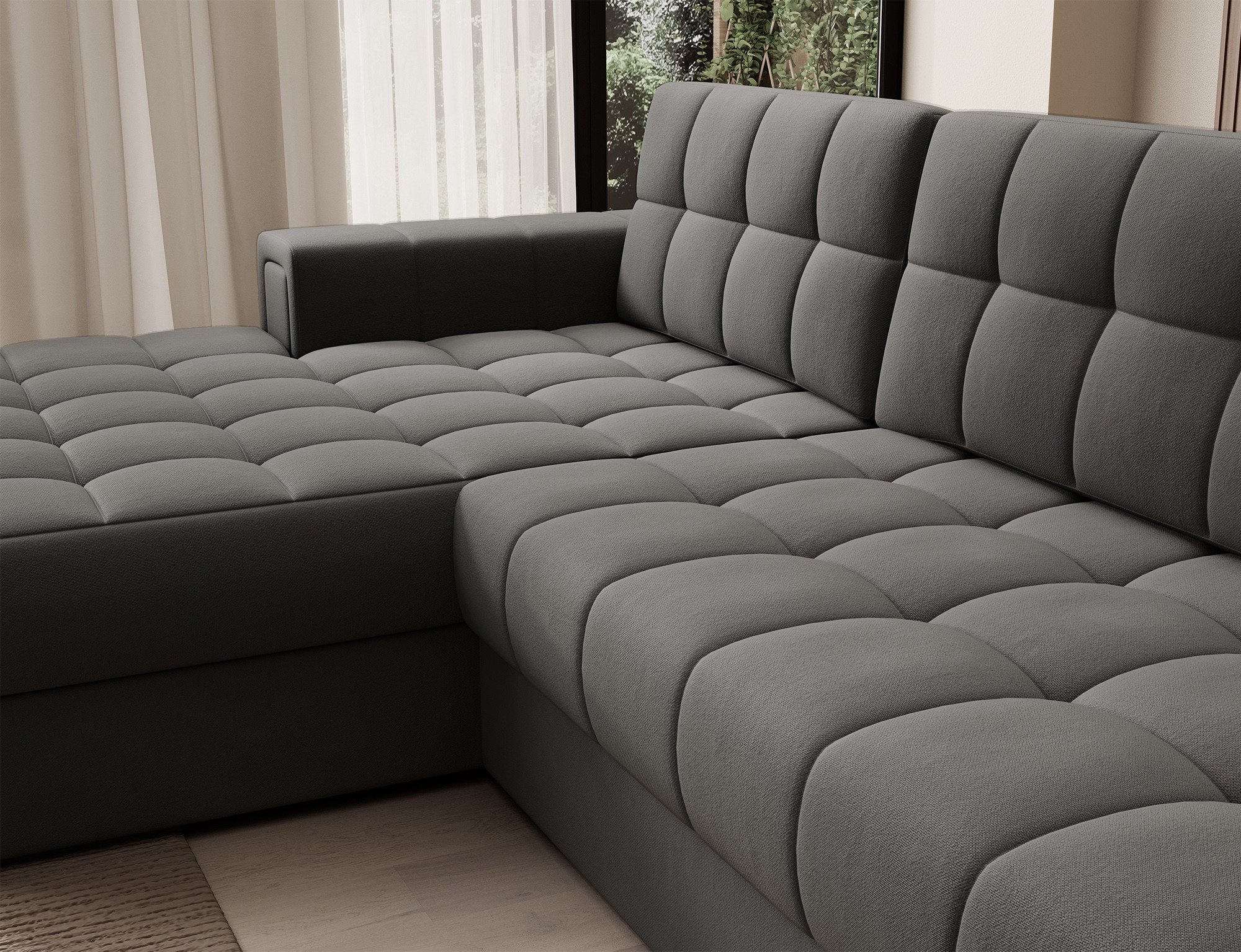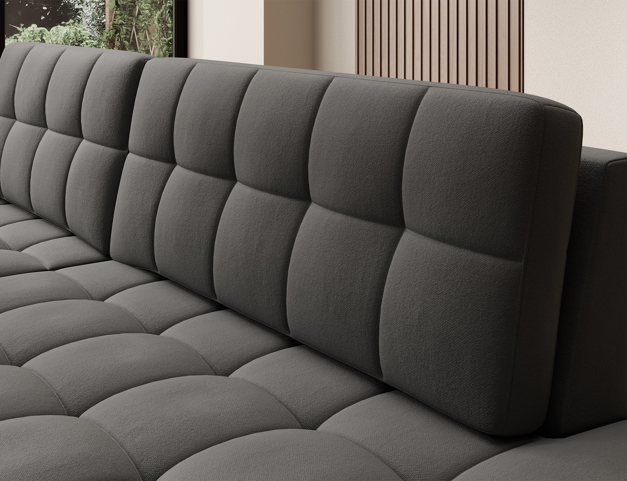 Rohová konstrukce sedací soupravy Blezalt umožňuje efektivní využití prostoru v místnosti. Je ideální pro umístění do rohu obývacího pokoje, čímž uvolníte více místa pro další nábytek nebo volný pohyb.