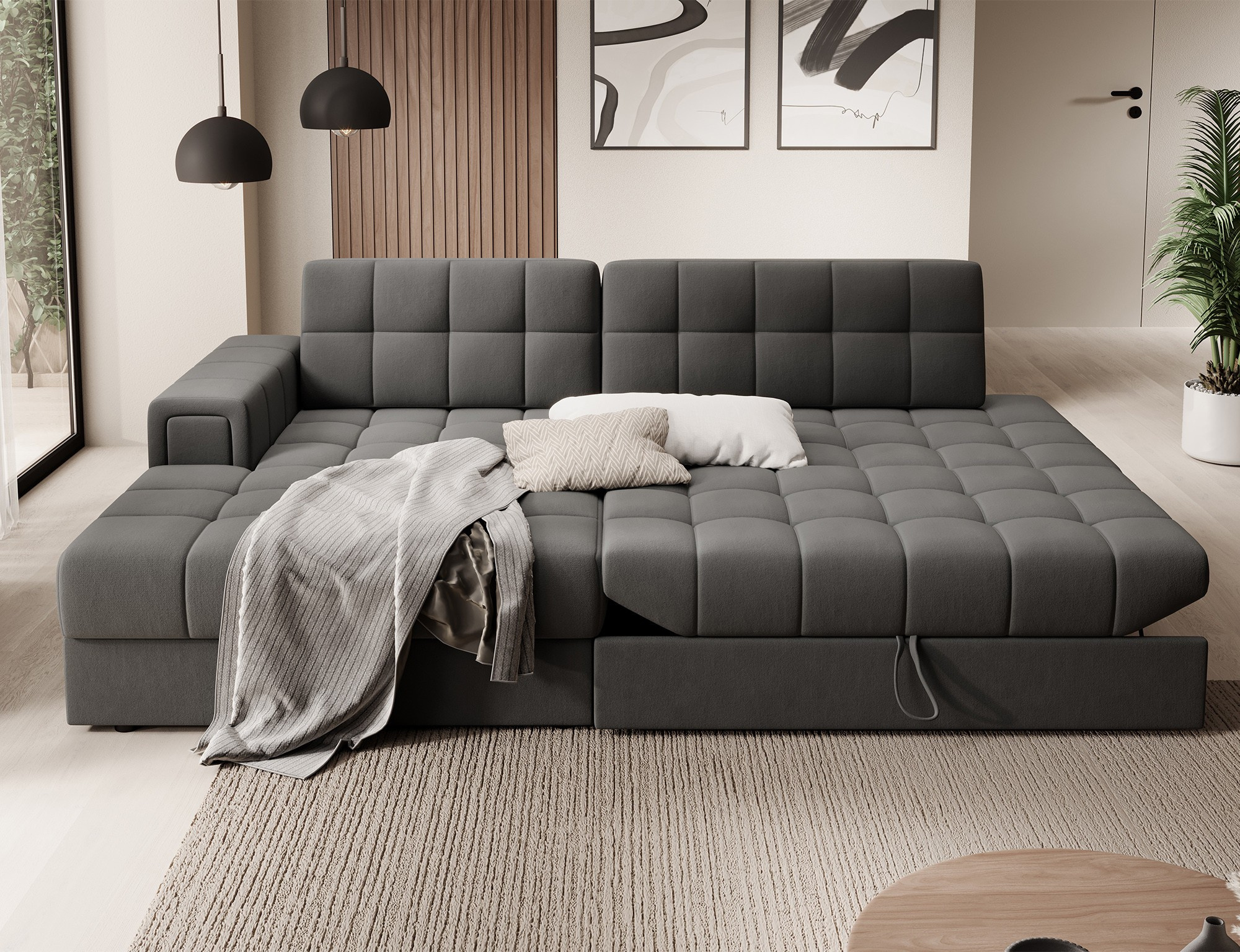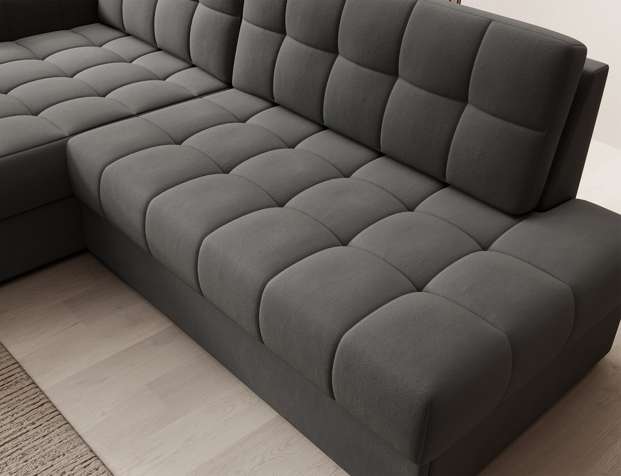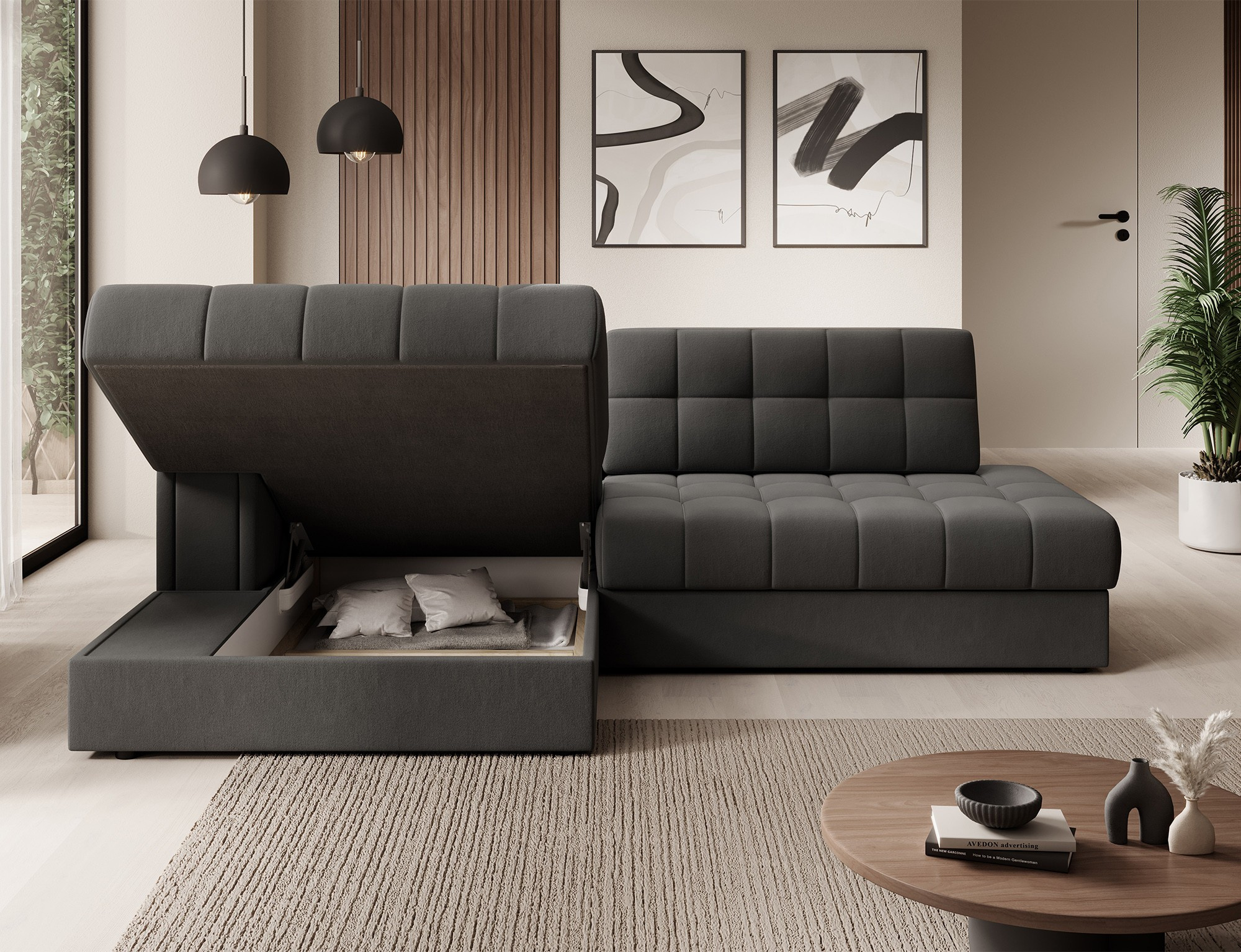 Jedním z hlavních rysů této sedací soupravy je její praktický úložný prostor. Už nikdy nebudete muset řešit, kam uložit deky, polštáře nebo sezónní dekorace. Všechny tyto věci můžete snadno a rychle uschovat do prostorného úložného prostoru, který je diskrétně integrován do designu soupravy.