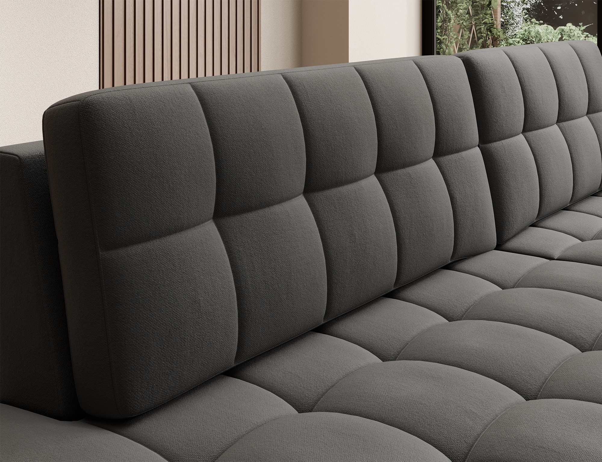 Jedním z hlavních rysů této sedací soupravy je její praktický úložný prostor. Už nikdy nebudete muset řešit, kam uložit deky, polštáře nebo sezónní dekorace. Všechny tyto věci můžete snadno a rychle uschovat do prostorného úložného prostoru, který je diskrétně integrován do designu soupravy.