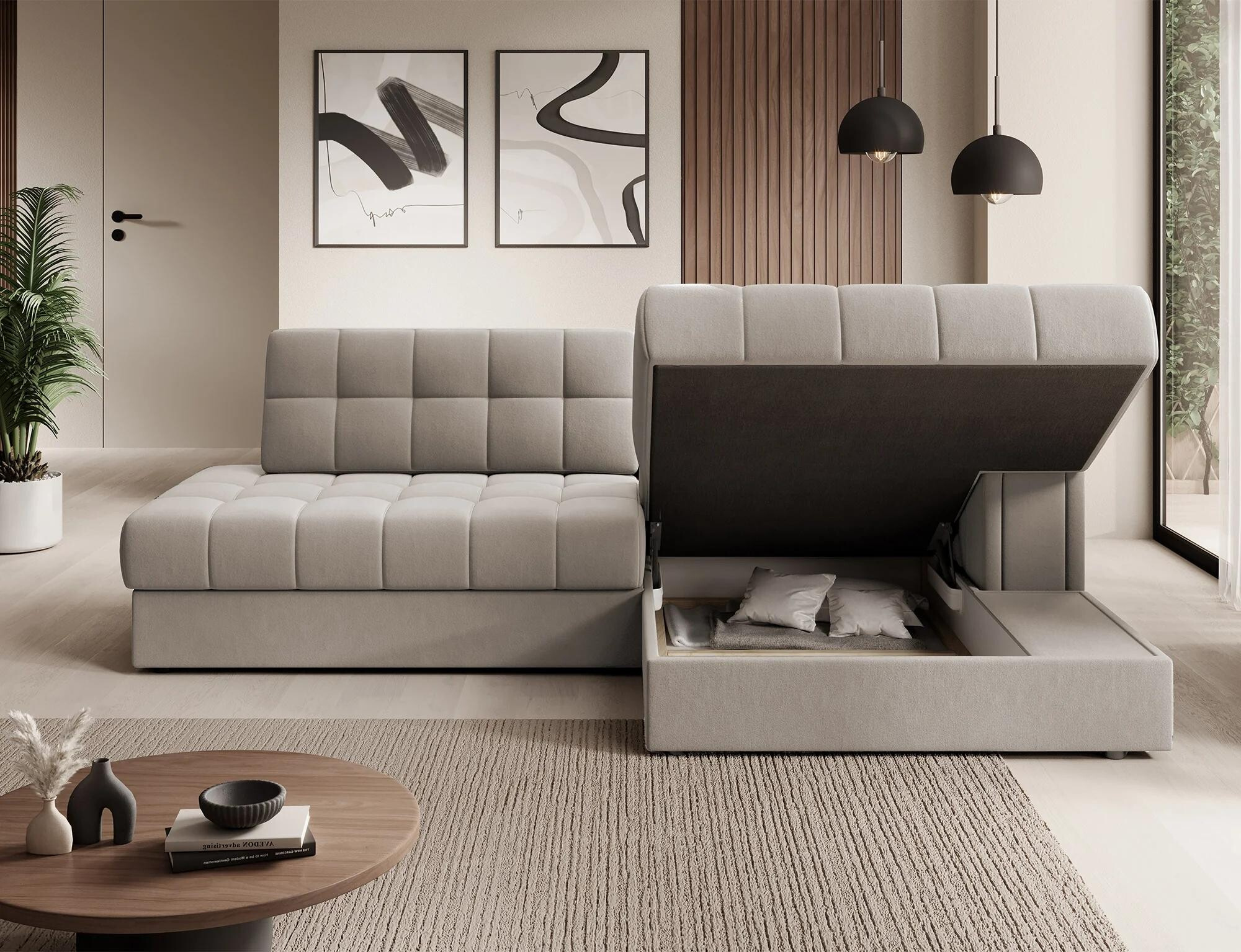 Jedním z hlavních rysů této sedací soupravy je její praktický úložný prostor. Už nikdy nebudete muset řešit, kam uložit deky, polštáře nebo sezónní dekorace. Všechny tyto věci můžete snadno a rychle uschovat do prostorného úložného prostoru, který je diskrétně integrován do designu soupravy.