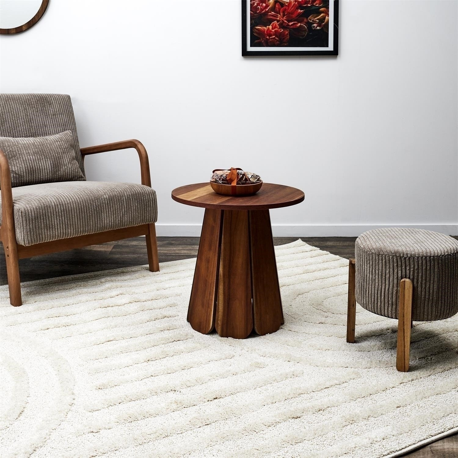 Boční stolek Will je vyroben z MDF desky s dýhou v barvě ořechového dřeva. Stolek s kulatou deskou byl vybaven jedinou nohou, která se skládá z 8 dokonale profilovaných destiček. Stolek vyžaduje montáž. Max. zatížení stolku 15 kg