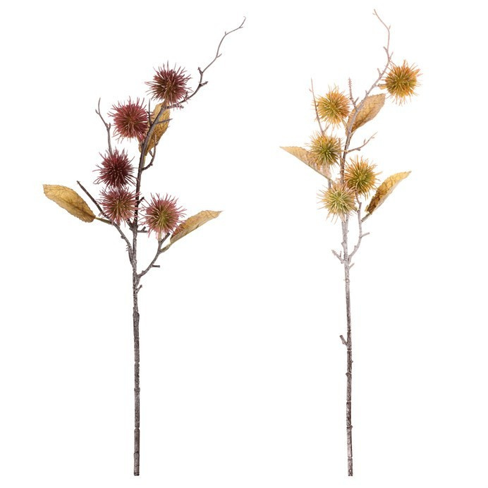 Umělá větev bodláku v kombinaci dvou barev (červené a béžové) je skvělou rostlinnou přízdobou, která přinese do vašeho interiéru přírodní nádech. Ideální pro podzimní aranžmá nebo jako elegantní doplněk k ostatním dekoracím. Jako umělá vám přináší nikdy nekončící krásu, které nikdy neuvadne a neopadá. Můžete je využít pro trvalou výzdobu, nebo opakovaně i v dalších letech.