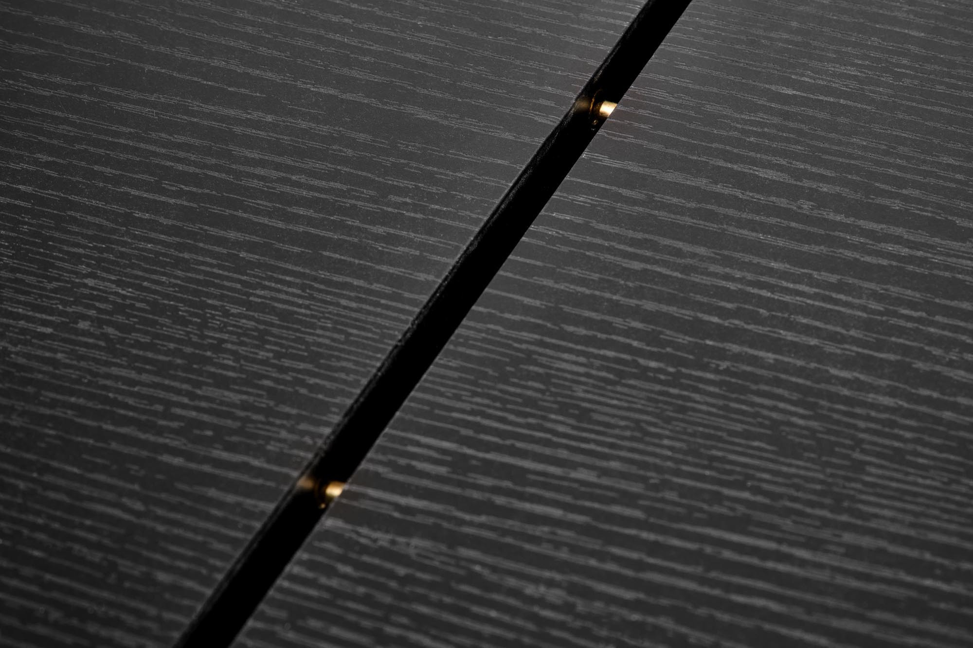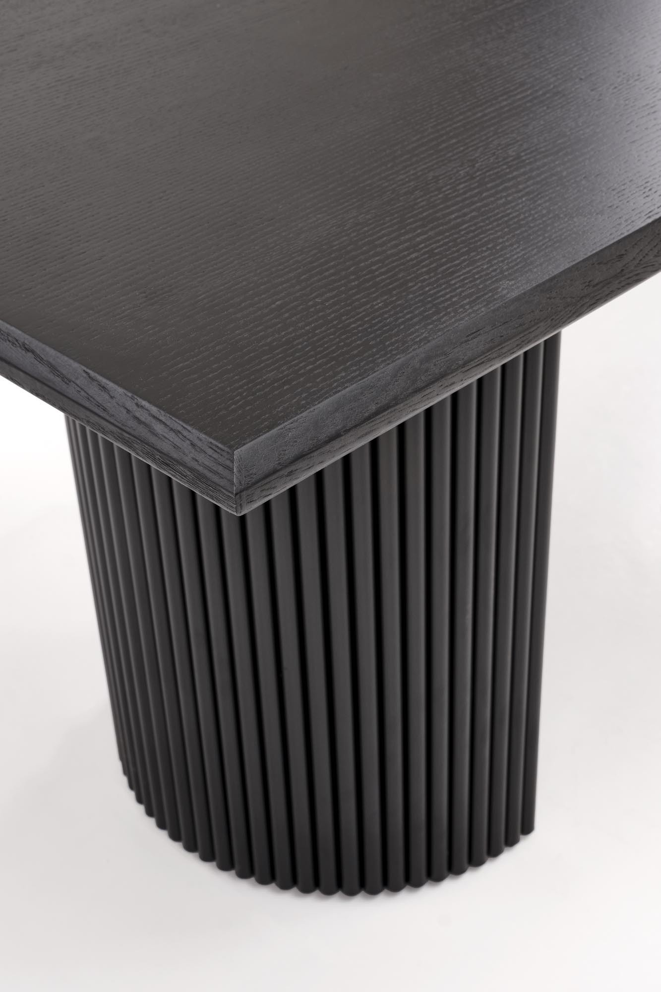 rozkládací stůl, rozměry: 160-250/90/78 cm, materiál: MDF + přírodní dýha (dubová) / ocel lakovaná práškovou barvou, barva: deska – černá, nohy - černé