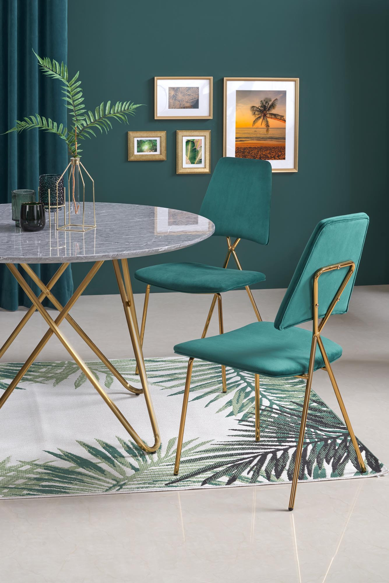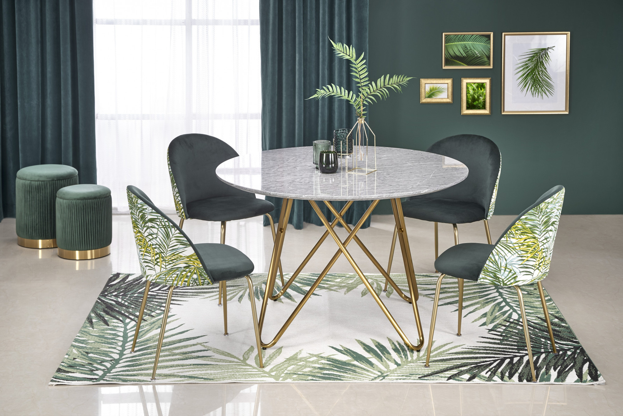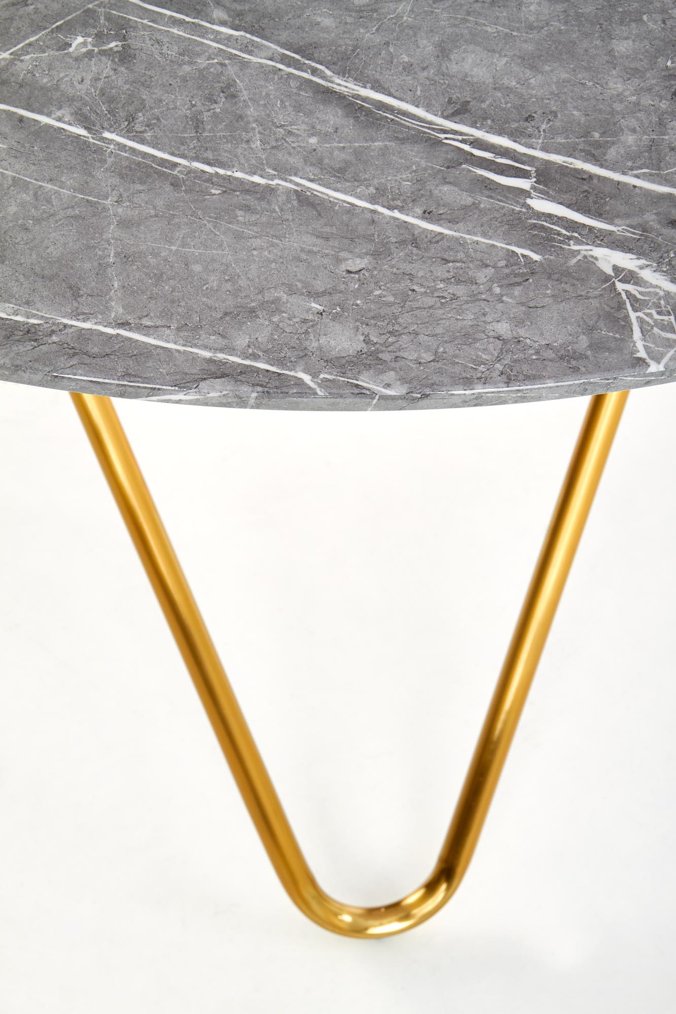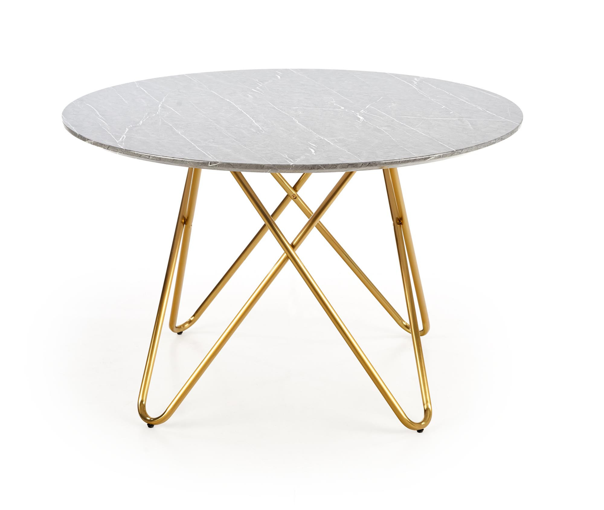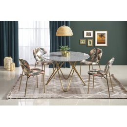 rozměry: o120/76 cm, materiál: MDF dýha / chromovaná ocel, barva: horní deska - šedý mramor, nohy - zlatá