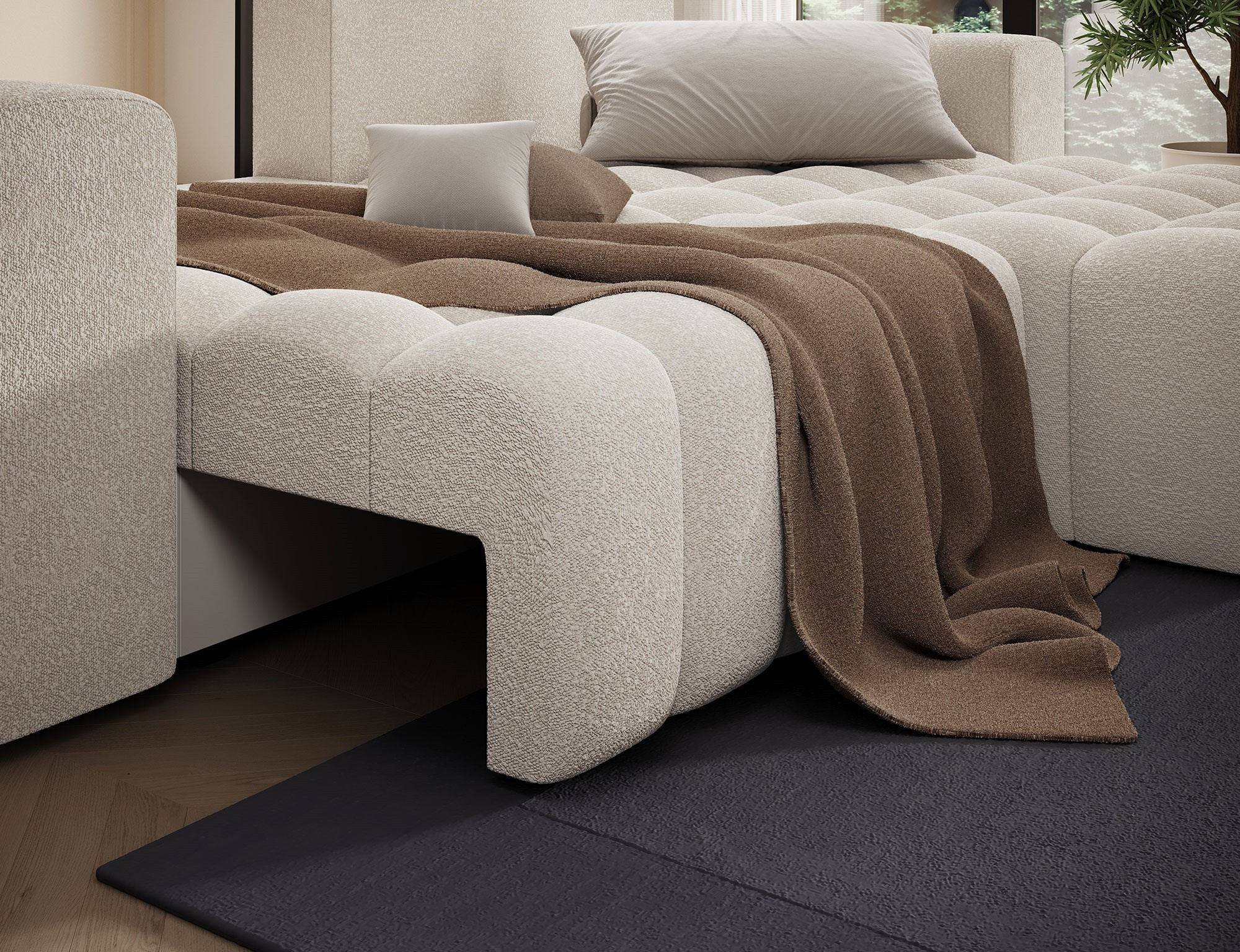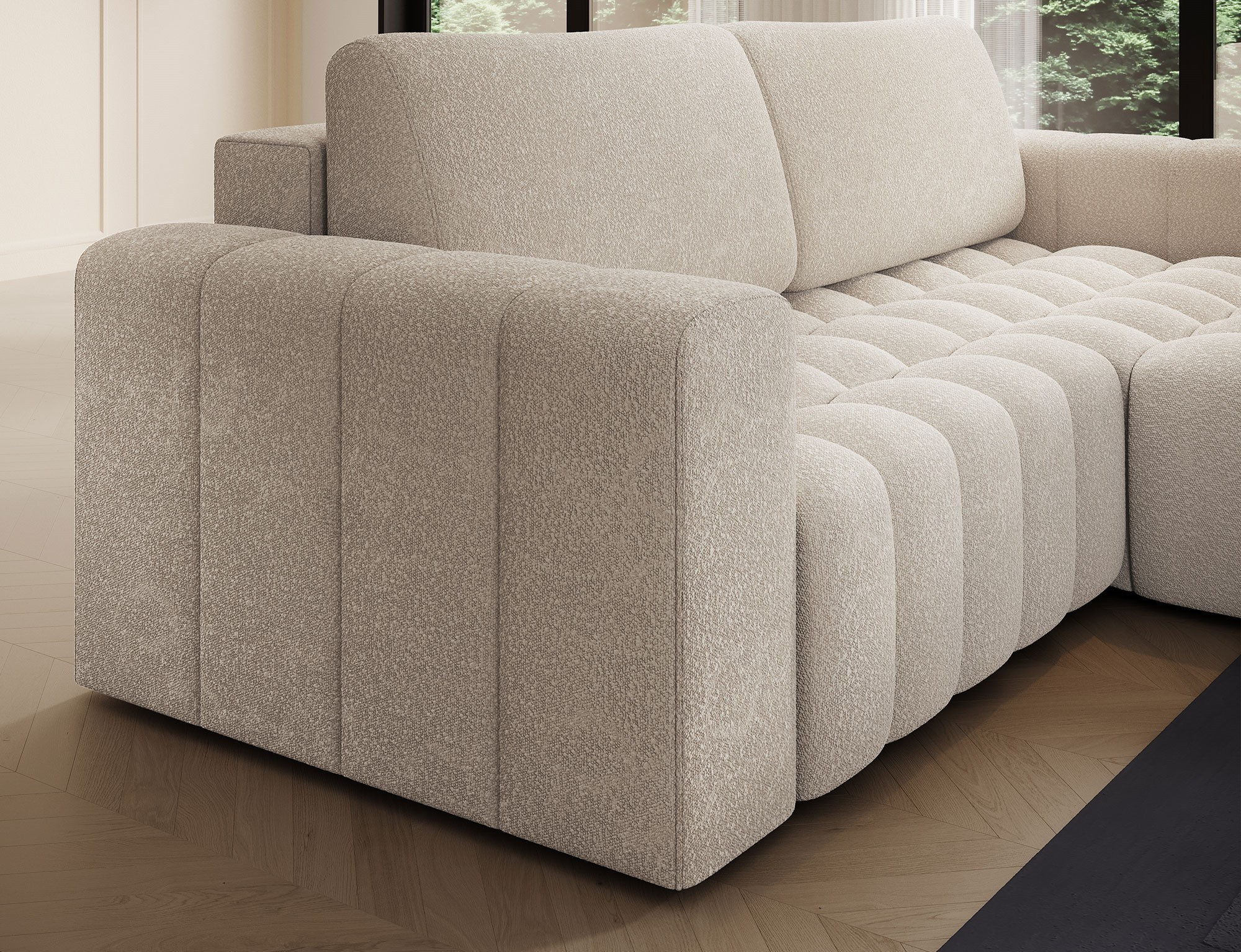 Bonett je originální, vkusná a mimořádně měkká rohová jednotka, která přináší závan svěžesti a luxusu do interiéru, ve kterém se nachází. Kus nábytku s rozměry 250 x 175 x 92 cm zaručuje maximální pohodlí pro denní odpočinek i relaxaci v noci, protože je vybaven funkcí spaní s vyhrazenou plochou - 200 x 130 cm. Existuje také systém DL, který pomáhá snadno rozložit nábytek do požadované polohy. Další vybavení zahrnuje prostorný úložný prostor na ložní prádlo a pohodlné sedadlo vyrobené z pěny T25 a HR pěny, které se nejlépe přizpůsobí našemu tělu, i během spánku. Rohová rozkládací pohovka Bonett je k dispozici v celé barevné škále společnosti Eltap, což vám poskytuje skvělé možnosti výběru nábytku a uspořádání obývacího pokoje podle vašich představ.