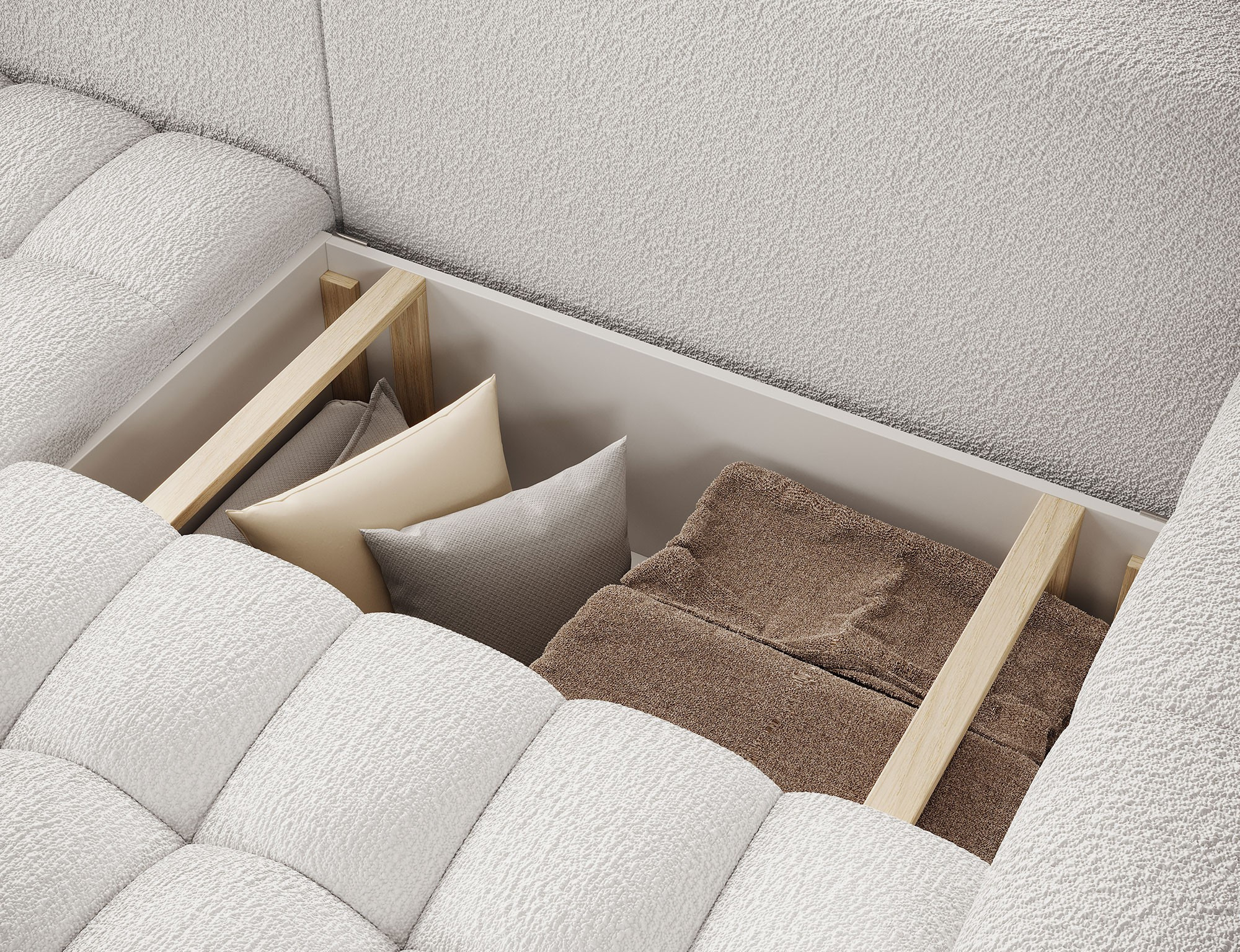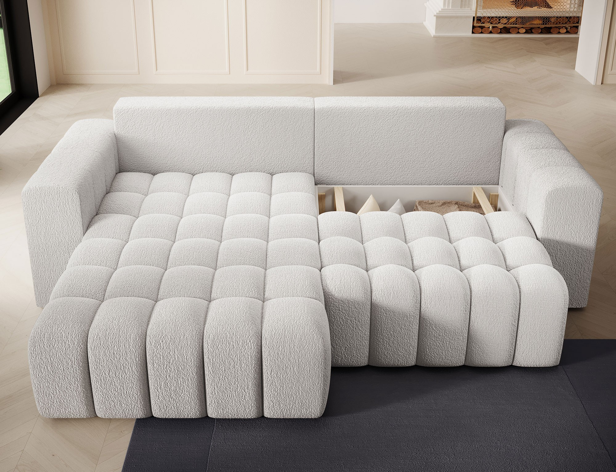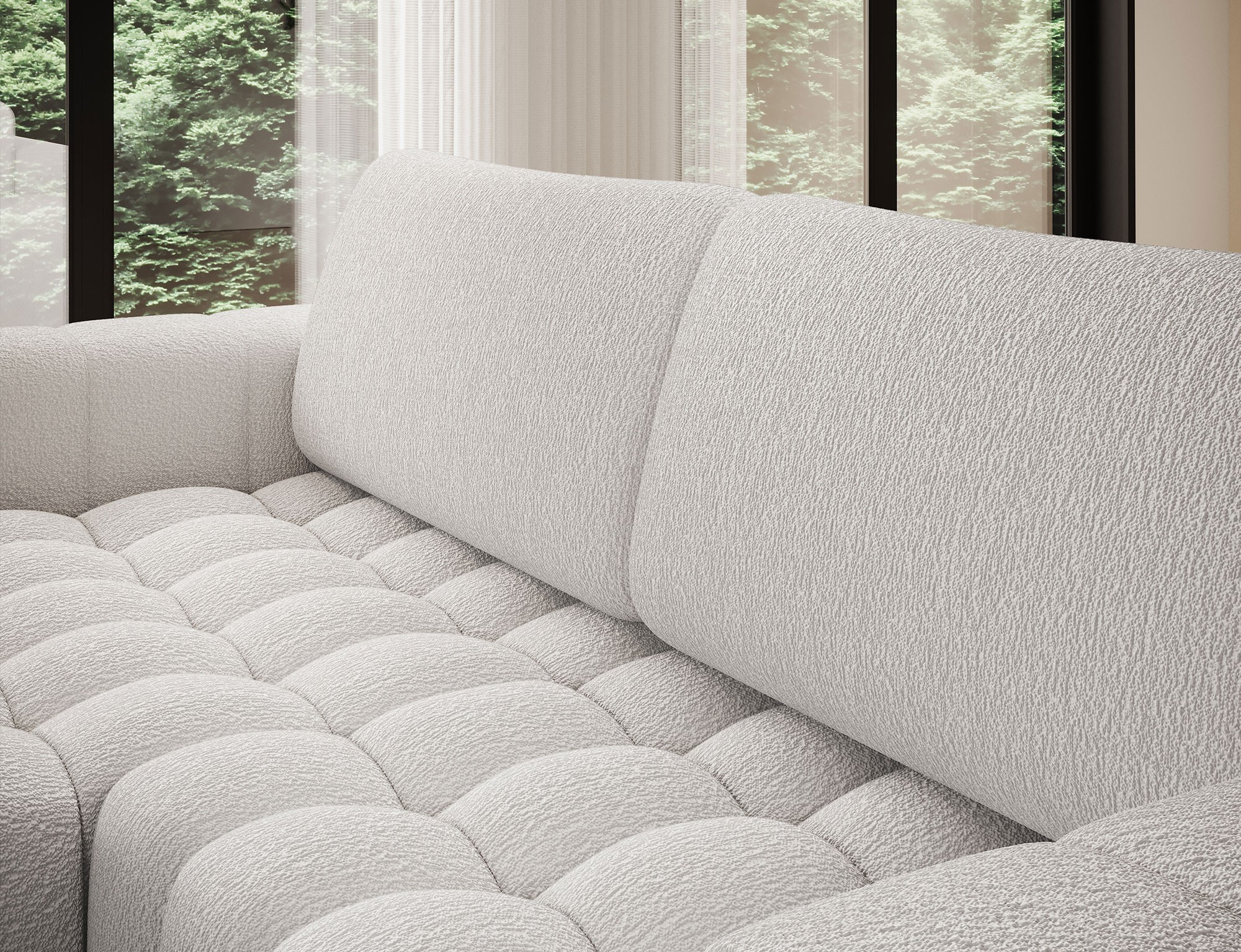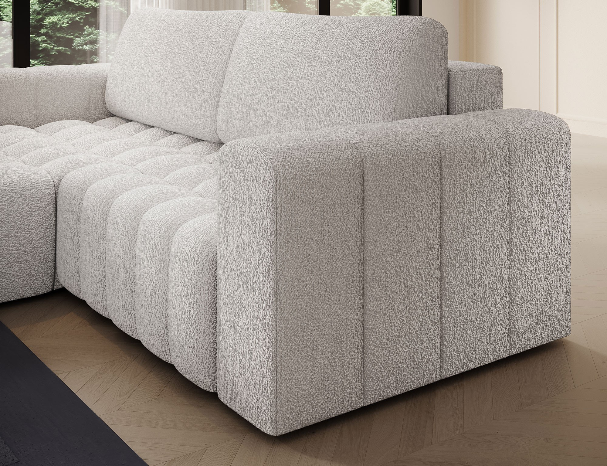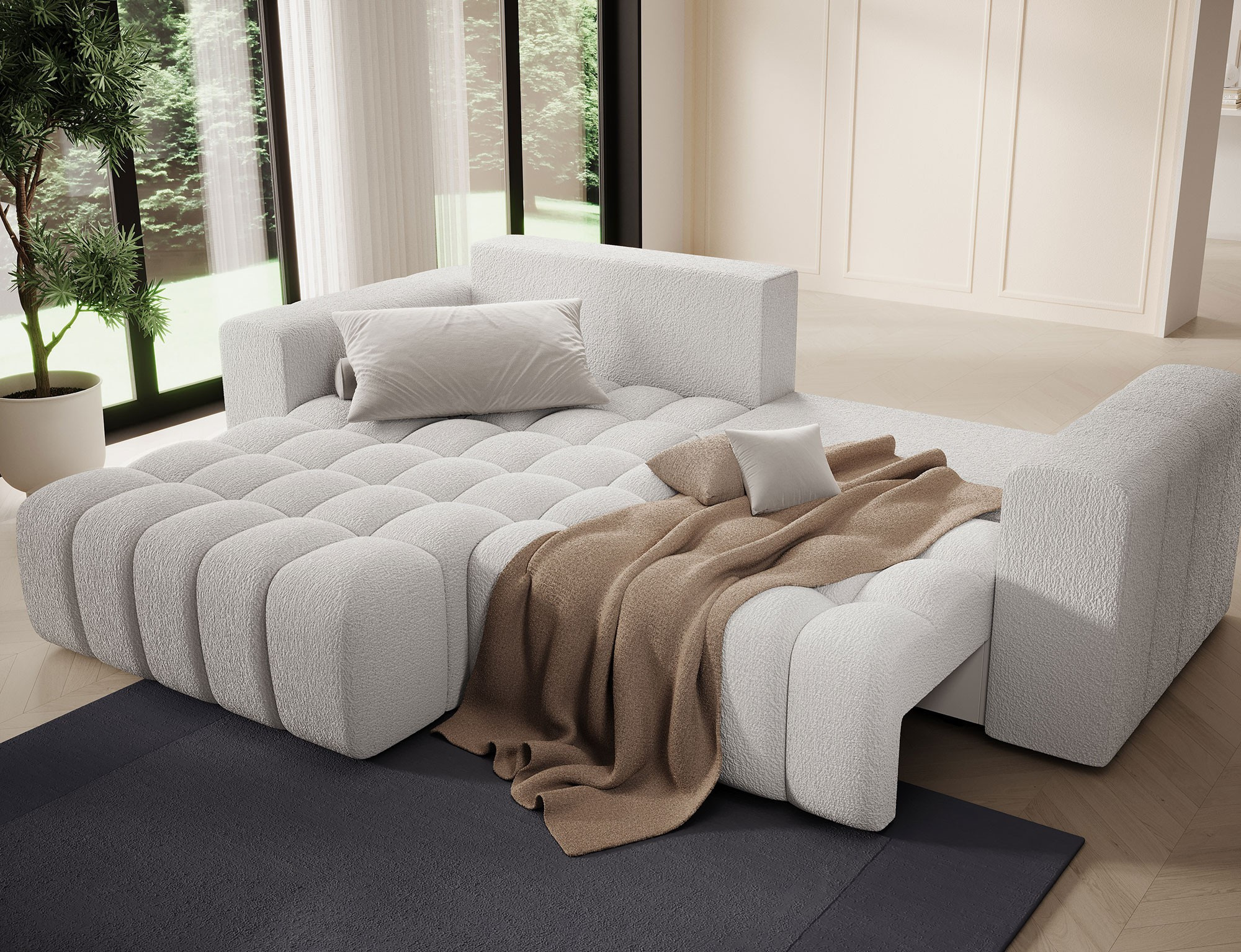 Bonett je originální, vkusná a mimořádně měkká rohová jednotka, která přináší závan svěžesti a luxusu do interiéru, ve kterém se nachází. Kus nábytku s rozměry 250 x 175 x 92 cm zaručuje maximální pohodlí pro denní odpočinek i relaxaci v noci, protože je vybaven funkcí spaní s vyhrazenou plochou - 200 x 130 cm. Existuje také systém DL, který pomáhá snadno rozložit nábytek do požadované polohy. Další vybavení zahrnuje prostorný úložný prostor na ložní prádlo a pohodlné sedadlo vyrobené z pěny T25 a HR pěny, které se nejlépe přizpůsobí našemu tělu, i během spánku. Rohová rozkládací pohovka Bonett je k dispozici v celé barevné škále společnosti Eltap, což vám poskytuje skvělé možnosti výběru nábytku a uspořádání obývacího pokoje podle vašich představ.