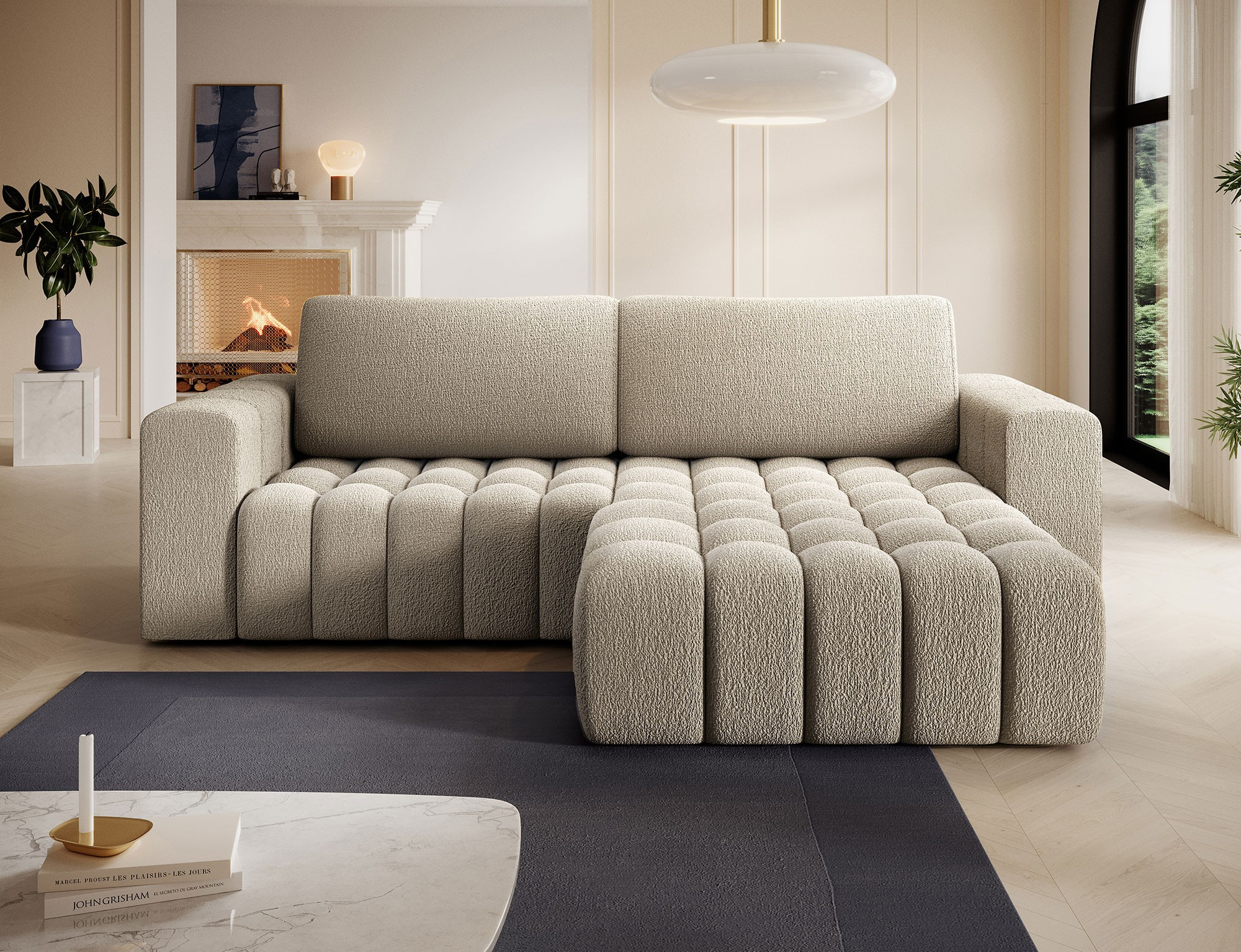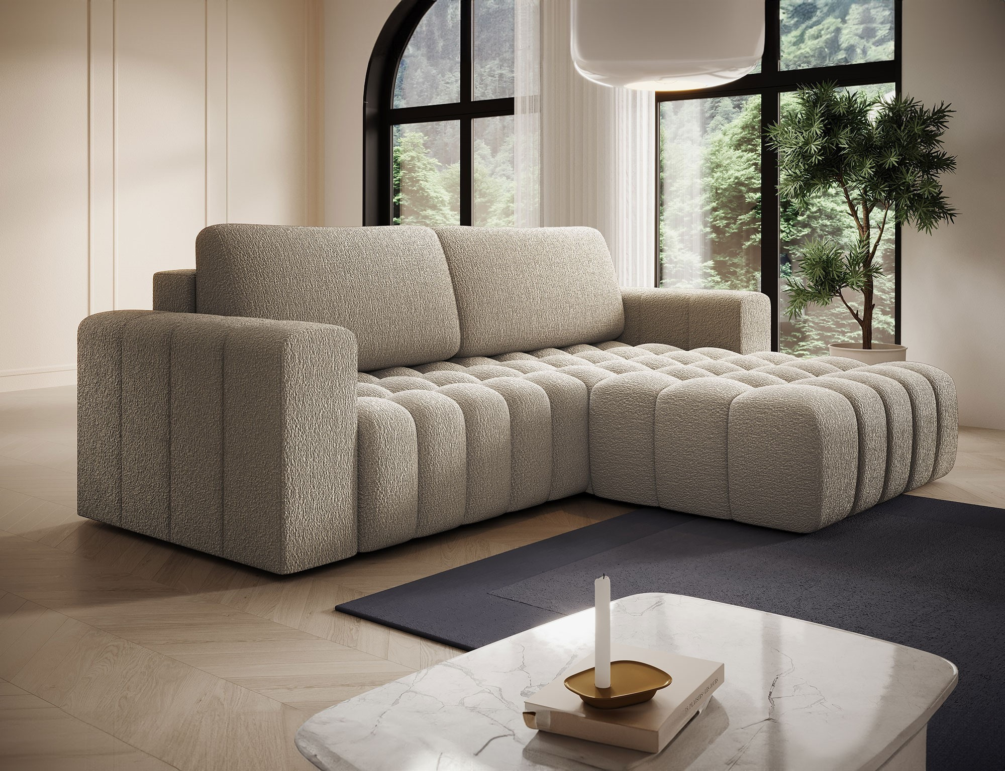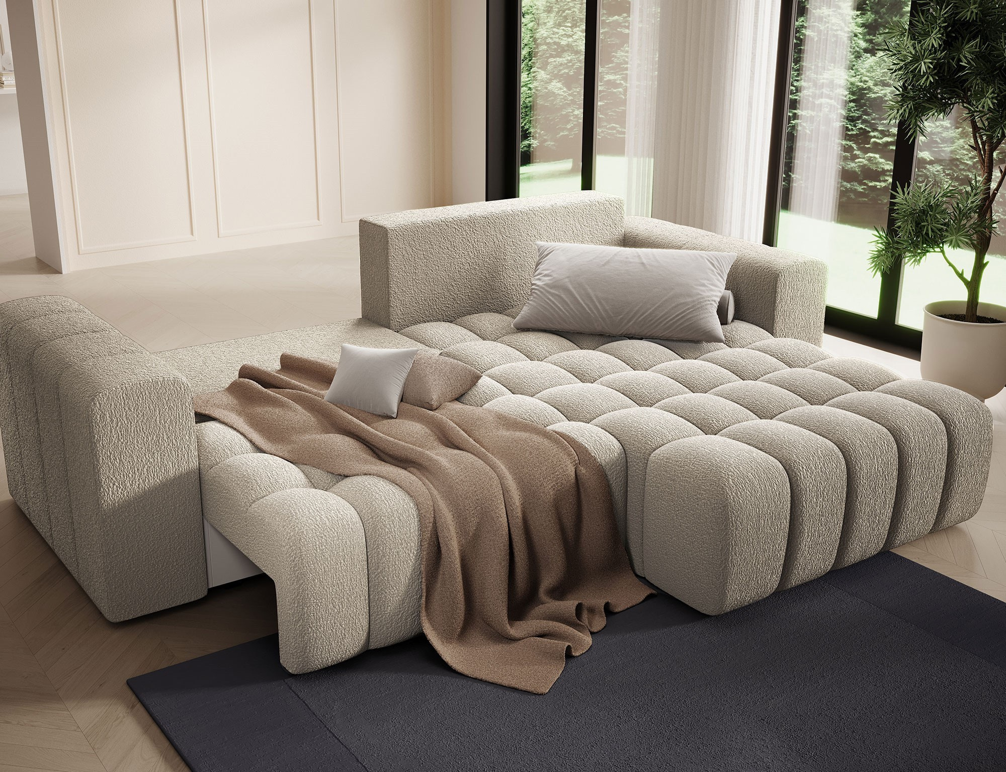 Bonett je originální, vkusná a mimořádně měkká rohová jednotka, která přináší závan svěžesti a luxusu do interiéru, ve kterém se nachází. Kus nábytku s rozměry 250 x 175 x 92 cm zaručuje maximální pohodlí pro denní odpočinek i relaxaci v noci, protože je vybaven funkcí spaní s vyhrazenou plochou - 200 x 130 cm. Existuje také systém DL, který pomáhá snadno rozložit nábytek do požadované polohy. Další vybavení zahrnuje prostorný úložný prostor na ložní prádlo a pohodlné sedadlo vyrobené z pěny T25 a HR pěny, které se nejlépe přizpůsobí našemu tělu, i během spánku. Rohová rozkládací pohovka Bonett je k dispozici v celé barevné škále společnosti Eltap, což vám poskytuje skvělé možnosti výběru nábytku a uspořádání obývacího pokoje podle vašich představ.