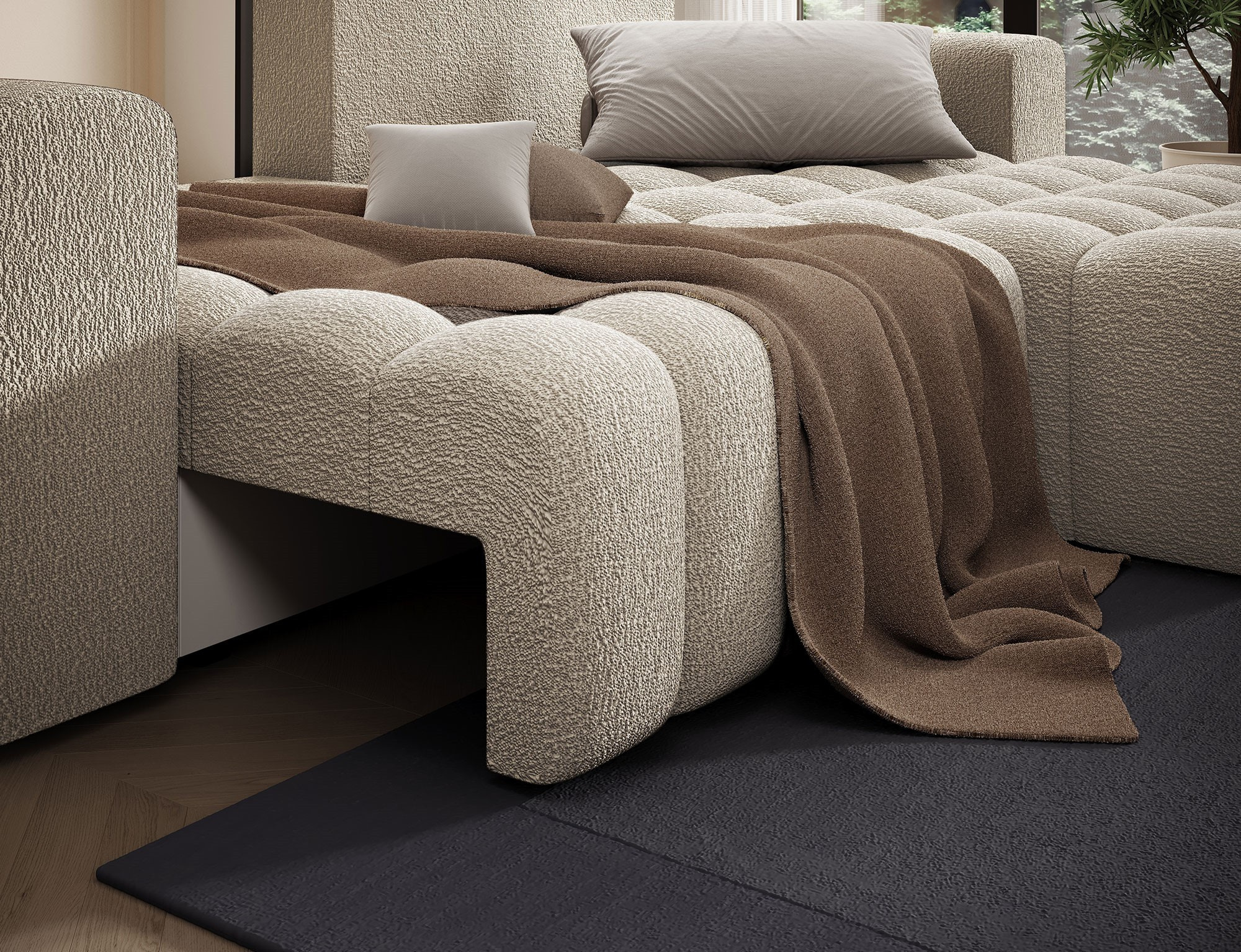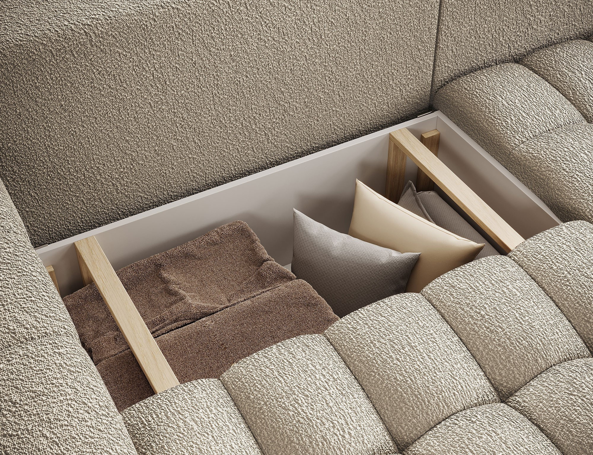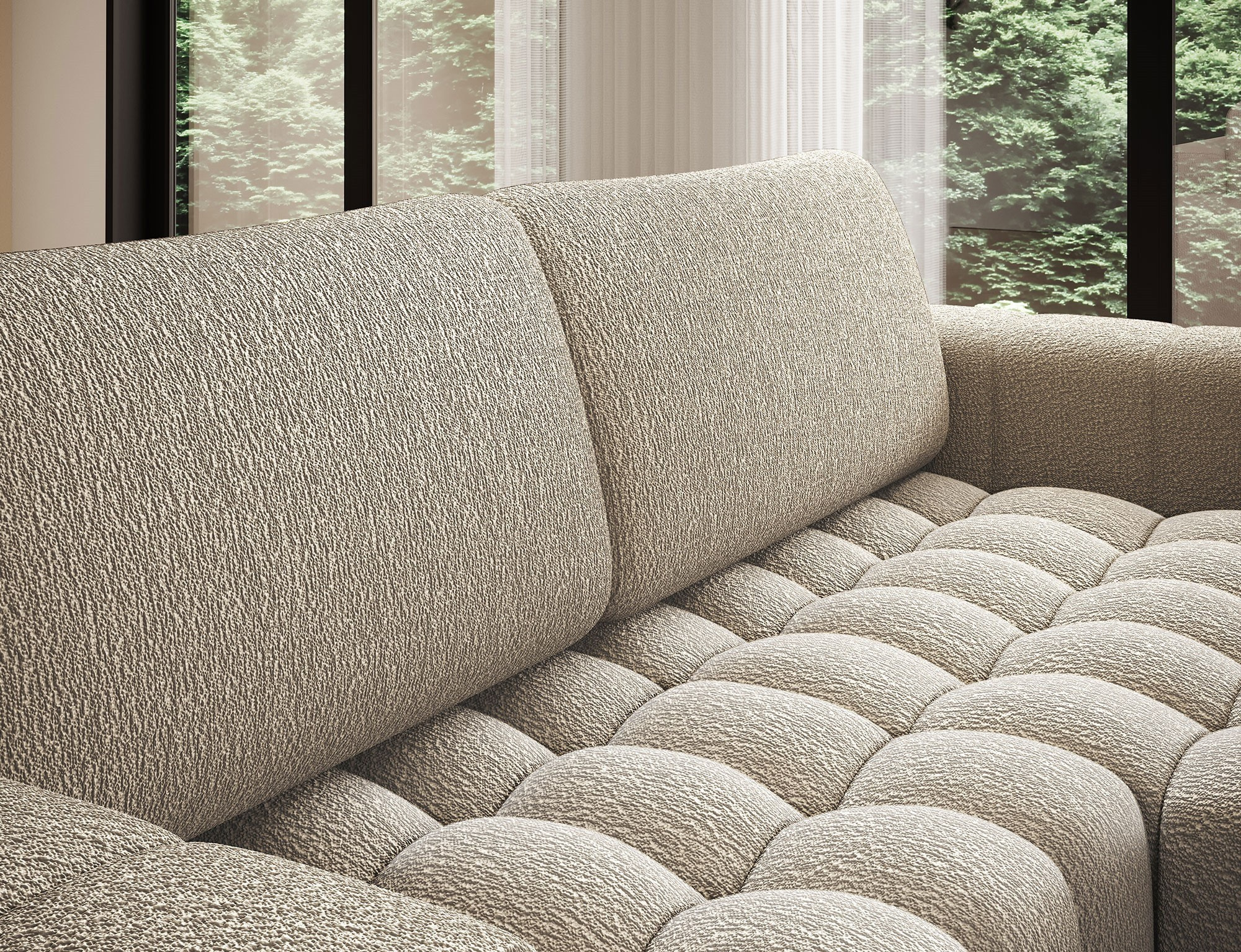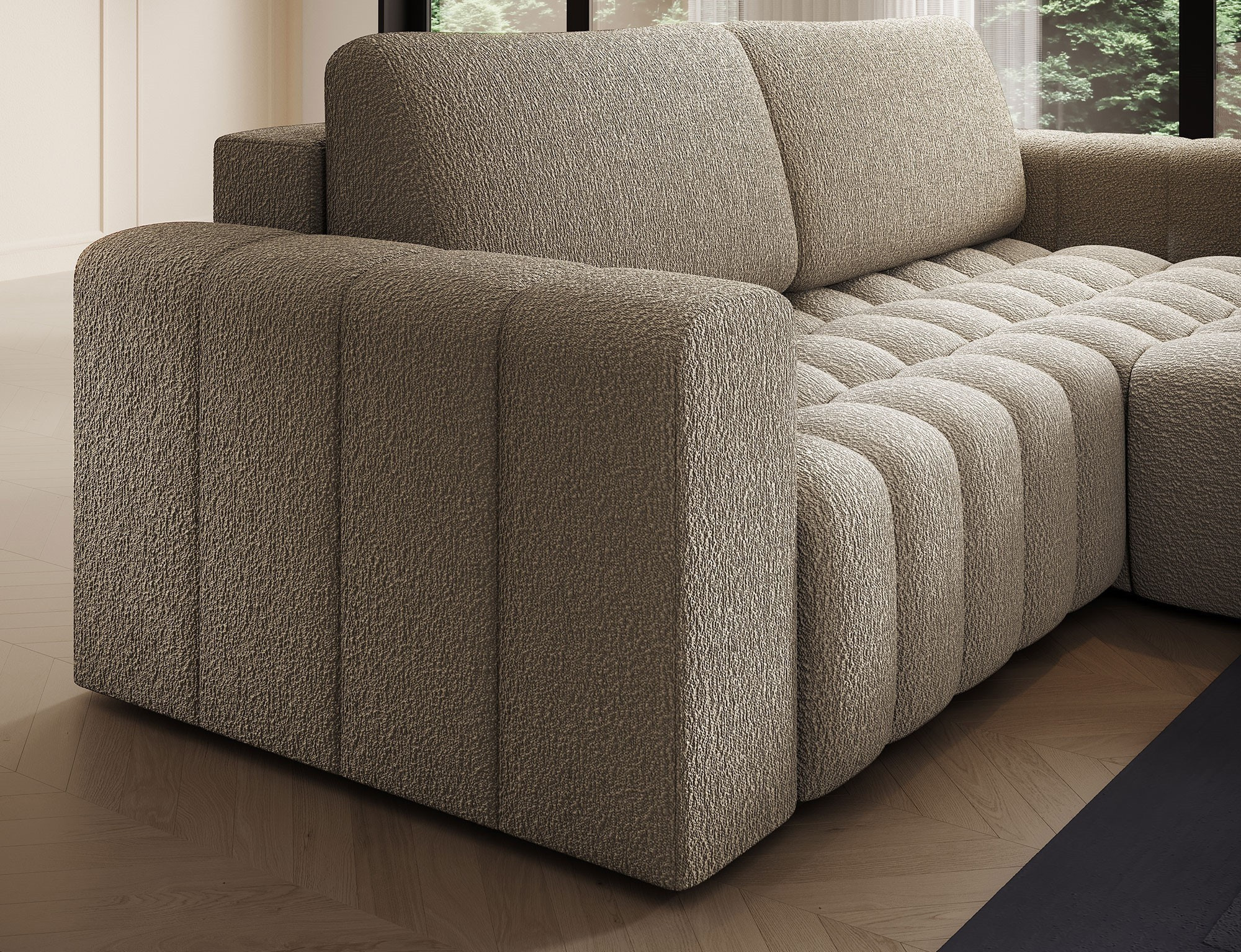 Bonett je originální, vkusná a mimořádně měkká rohová jednotka, která přináší závan svěžesti a luxusu do interiéru, ve kterém se nachází. Kus nábytku s rozměry 250 x 175 x 92 cm zaručuje maximální pohodlí pro denní odpočinek i relaxaci v noci, protože je vybaven funkcí spaní s vyhrazenou plochou - 200 x 130 cm. Existuje také systém DL, který pomáhá snadno rozložit nábytek do požadované polohy. Další vybavení zahrnuje prostorný úložný prostor na ložní prádlo a pohodlné sedadlo vyrobené z pěny T25 a HR pěny, které se nejlépe přizpůsobí našemu tělu, i během spánku. Rohová rozkládací pohovka Bonett je k dispozici v celé barevné škále společnosti Eltap, což vám poskytuje skvělé možnosti výběru nábytku a uspořádání obývacího pokoje podle vašich představ.