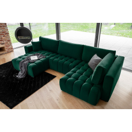 Elegance a pohodlí uzavřené v jednom kusu nábytku, to je Bonito. Pohodlí a komfort byly dosaženy použitím dvou čalounických pěn - pěny T2540 a mimořádně pohodlné vysoce elastické HR pěny. Rohová pohovka Bonito ve tvaru U má dvě otomanové části, které poskytnou odpočinek i pro velkou rodinu. Funkce spaní typu DL, s mechanismem pro snadné rozložení, se po rozložení promění v pohodlnou, velkou postel na spaní s rozměry 300cmx120cm. Další polštáře lze uložit do velkého úložného prostoru. Bonito je kus nábytku navržený pro větší obývací pokoje, jeho rozměry jsou 340x170x92 cm. Pro rohovou pohovku Bonito jsme vybrali speciálně vybrané látky, které dokonale ladí s nábytkem.