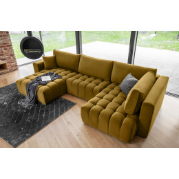 Elegance a pohodlí uzavřené v jednom kusu nábytku, to je Bonito. Pohodlí a komfort byly dosaženy použitím dvou čalounických pěn - pěny T2540 a mimořádně pohodlné vysoce elastické HR pěny. Rohová pohovka Bonito ve tvaru U má dvě otomanové části, které poskytnou odpočinek i pro velkou rodinu. Funkce spaní typu DL, s mechanismem pro snadné rozložení, se po rozložení promění v pohodlnou, velkou postel na spaní s rozměry 300cmx120cm. Další polštáře lze uložit do velkého úložného prostoru. Bonito je kus nábytku navržený pro větší obývací pokoje, jeho rozměry jsou 340x170x92 cm. Pro rohovou pohovku Bonito jsme vybrali speciálně vybrané látky, které dokonale ladí s nábytkem.
