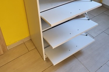 Botník je vyroben z laminované 16mm. Přihrádky jsou vyklápěcí.