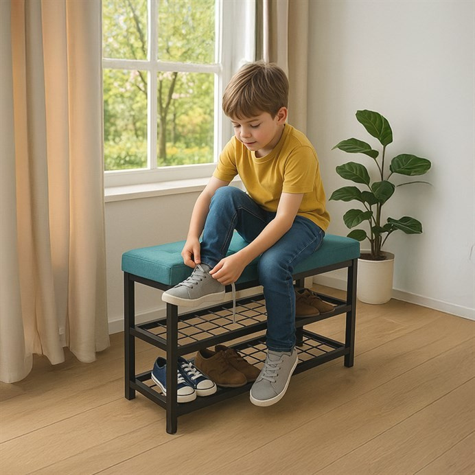 Stylový botník s lavicí značky Autronic přináší kombinaci pohodlí a praktičnosti. Zelené polstrované sedátko nabízí komfort při obouvání, zatímco dvě prostorné kovové police poskytují dostatek místa pro uskladnění obuvi. Stabilní konstrukce z kovu zajišťuje odolnost a dlouhou životnost. Elegantní design v neutrálních tónech snadno zapadne do moderních i tradičních interiérů. Tento botník je ideální volbou pro předsíně, kde pomůže udržet pořádek a zároveň přidá praktický sedací prvek.
