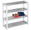Botník s čtyřmi policemi z chromovaného kovu a rámem z masivního kaučukovníku v bílé matné barvě nabízí pevné a stabilní řešení pro uspořádání obuvi. Kovové police jsou odolné a snadno se udržují, zatímco masivní dřevěný rám zajišťuje dlouhou životnost a stabilitu celé konstrukce. Díky otevřenému designu je obuv dobře větratelná a přehledně uspořádaná. Botník je vhodný do předsíní i šaten, kde oceníte jeho kombinaci funkčnosti a jednoduchého moderního vzhledu. Rozměry a nosnost odpovídají běžným požadavkům na domácí použití.