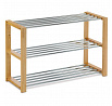 Botník s třemi chromovanými kovovými policemi a rámem z masivního kaučukovníku v přírodním odstínu nabízí praktické a stabilní řešení pro uskladnění obuvi. Pevné police zajišťují dostatek prostoru pro více párů bot, zatímco masivní dřevěný rám přispívá k celkové stabilitě a dlouhé životnosti. Povrchová úprava dřeva je hladká a přírodní, což podtrhuje jeho autentický vzhled a snadnou údržbu. Kompaktní rozměry umožňují umístění do předsíní i menších prostor, kde je potřeba efektivně využít místo. Botník kombinuje funkčnost s jednoduchým designem vhodným do různých interiérů.