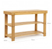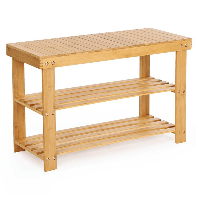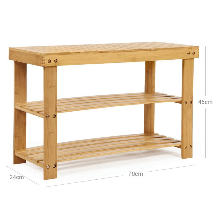 Botník z přírodního bambusu nabízí praktické řešení pro uspořádání obuvi v předsíni či chodbě. Jeho pevné provedení s dvěma policemi umožňuje efektivní využití úložného prostoru, přičemž otevřená konstrukce zajišťuje dostatečné větrání. Povrch je hladký a snadno udržovatelný, což přispívá k dlouhé životnosti výrobku. Kompaktní rozměry 70x28x45 cm umožňují umístění i do menších prostor. Přírodní odstín bambusu přináší do interiéru příjemný a svěží vzhled.
