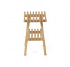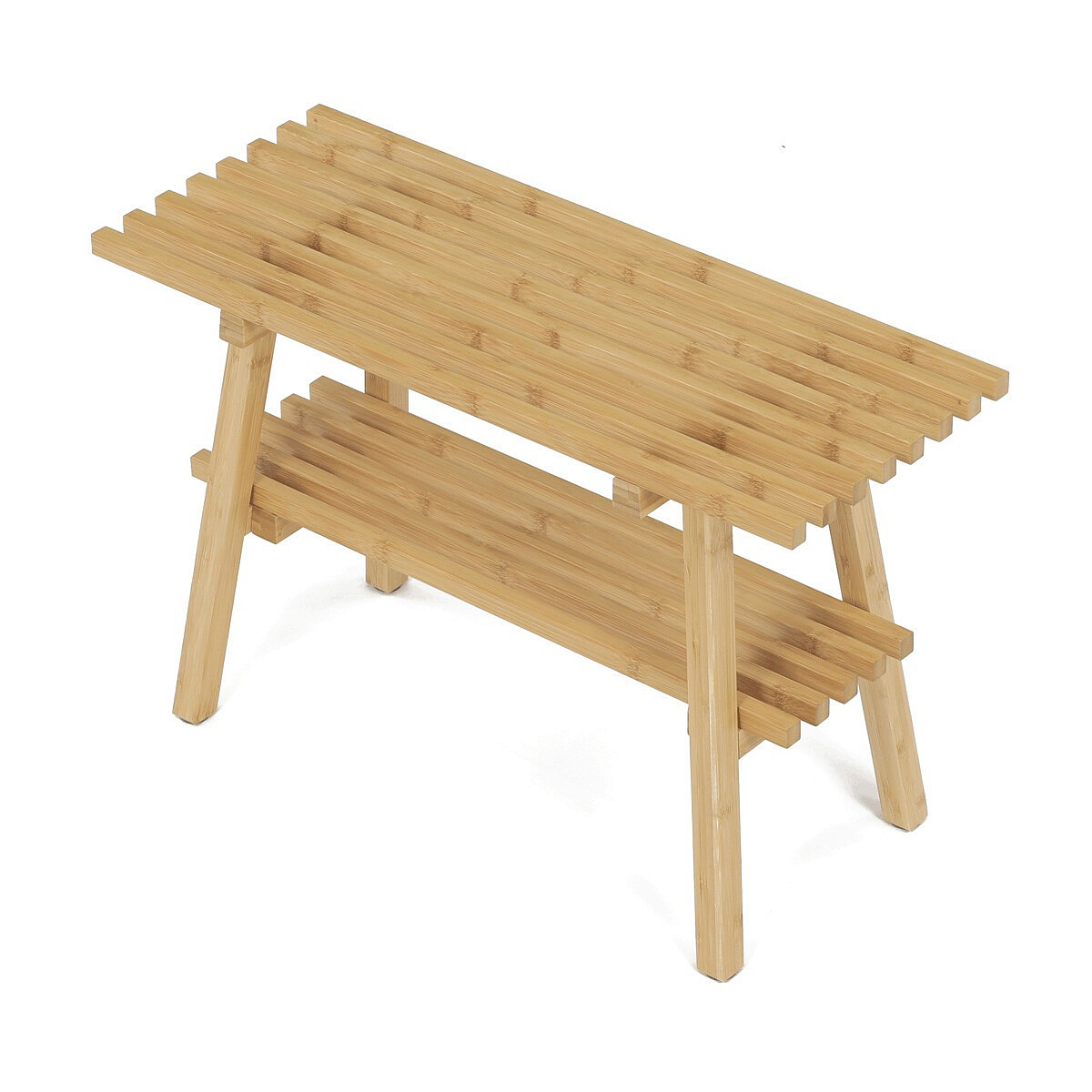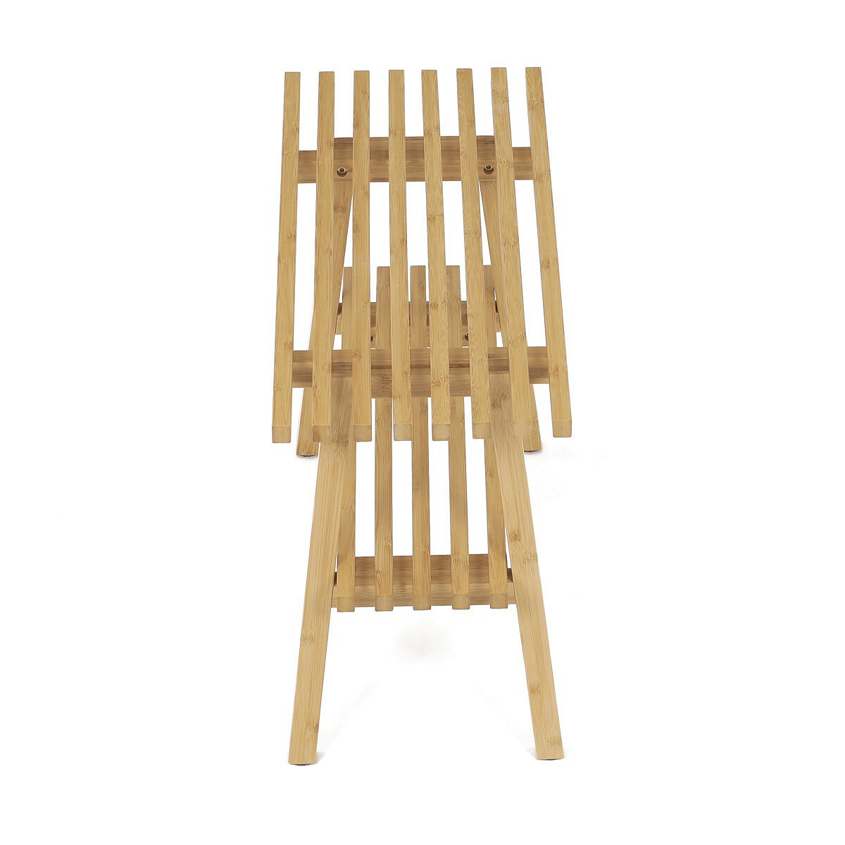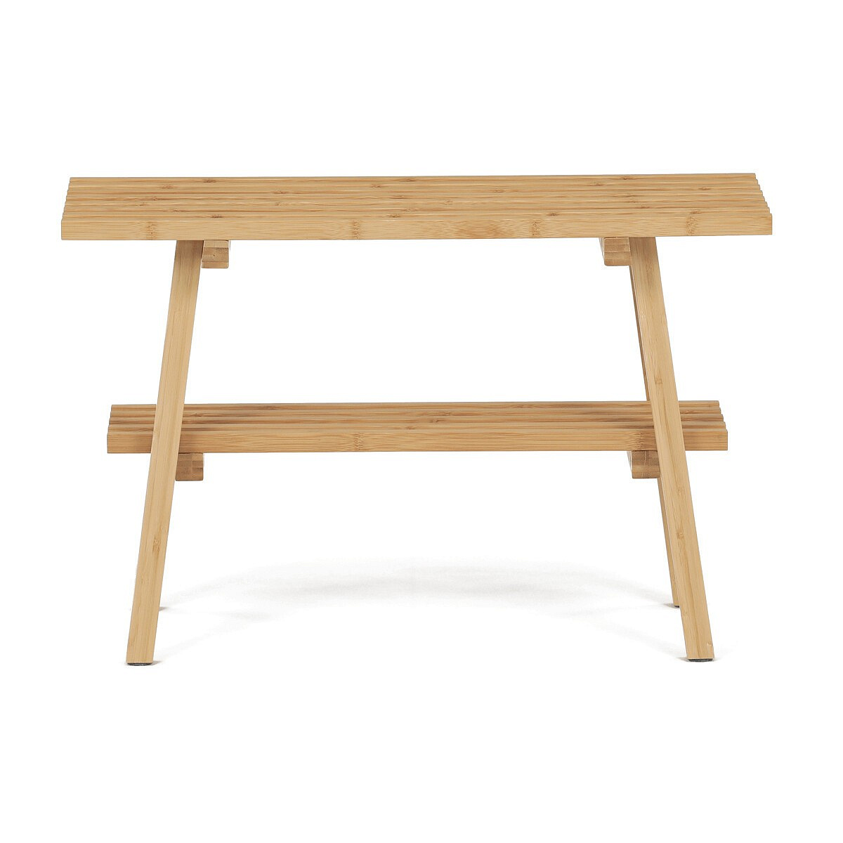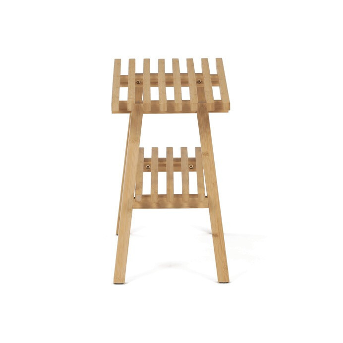 Botník z masivního bambusu v přírodním odstínu nabízí praktické a estetické řešení pro uspořádání obuvi v domácnosti. Jeho jednoduchý design s jednou policí tvořenou vodorovnými latěmi umožňuje efektivní větrání a rychlé schnutí obuvi. Stabilní nohy mírně rozšířené do stran zajišťují pevnost a bezpečnost při používání. Povrchová úprava bambusu podtrhuje jeho přírodní vzhled a zároveň usnadňuje údržbu. Díky kompaktním rozměrům se botník hodí do předsíní i menších prostor.