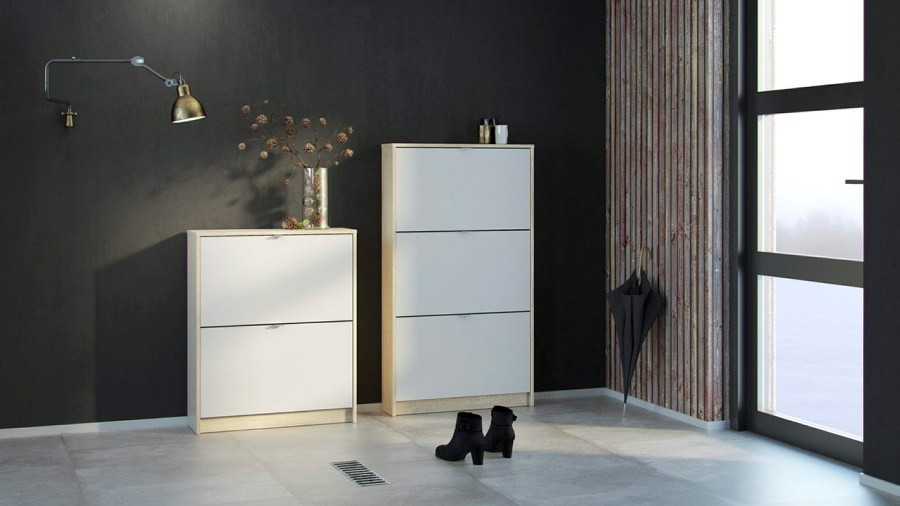 Zachraňte svou předsíň před nepořádkem a pořiďte si botník Flap s výklopnými dvířky. Botník nabízíme v několika variantách, které můžete různě kombinovat a jen na Vás a Vašem prostoru záleží kolik si těchto botníků koupíte a jak si je uspořádáte. V tomto případě se fantazii meze nekladou. Pro inspiraci jsou přiloženy fotografie s vyobrazením, jaké jsou možnosti sestavení. Díky svému provedení pojme botník Flap opravdu velké množství bot. Do každé výklopné přihrádky můžete ukládat boty ve dvou řadách.Vaše předsíň pak bude stále uklizená a zakopávání o boty se stane minulostí. Botník je vyrobený z lamina, které je odolné a snadné na údržbu a nabízíme ho v několika barevných provedeních. Je dodávaný v demontu a součástí balení je montážní návod včetně všech spojovacích prvků. Cena je uvedena za 1 kus botníku Flap se třemi výklopnými přihrádkami. Vyobrazené doplňky a dekorace nejsou v ceně.