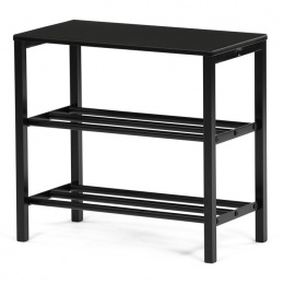 Stylový a praktický botník značky Autronic je perfektní volbou pro každou moderní předsíň. Jeho elegantní černé provedení s kovovou konstrukcí zajišťuje odolnost a dlouhou životnost. Botník nabízí dvě prostorné police, které poskytují dostatek místa pro uskladnění obuvi, zatímco horní desku můžete využít na dekorace nebo drobnosti. Díky minimalistickému designu se snadno začlení do jakéhokoliv interiéru. Tento botník kombinuje funkčnost s jednoduchým a čistým vzhledem, který vám pomůže udržet předsíň vždy uklizenou.