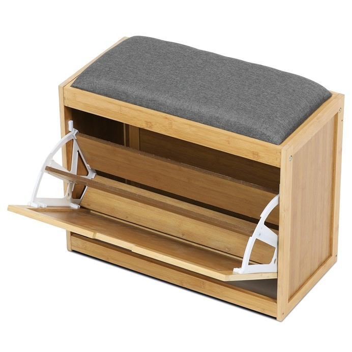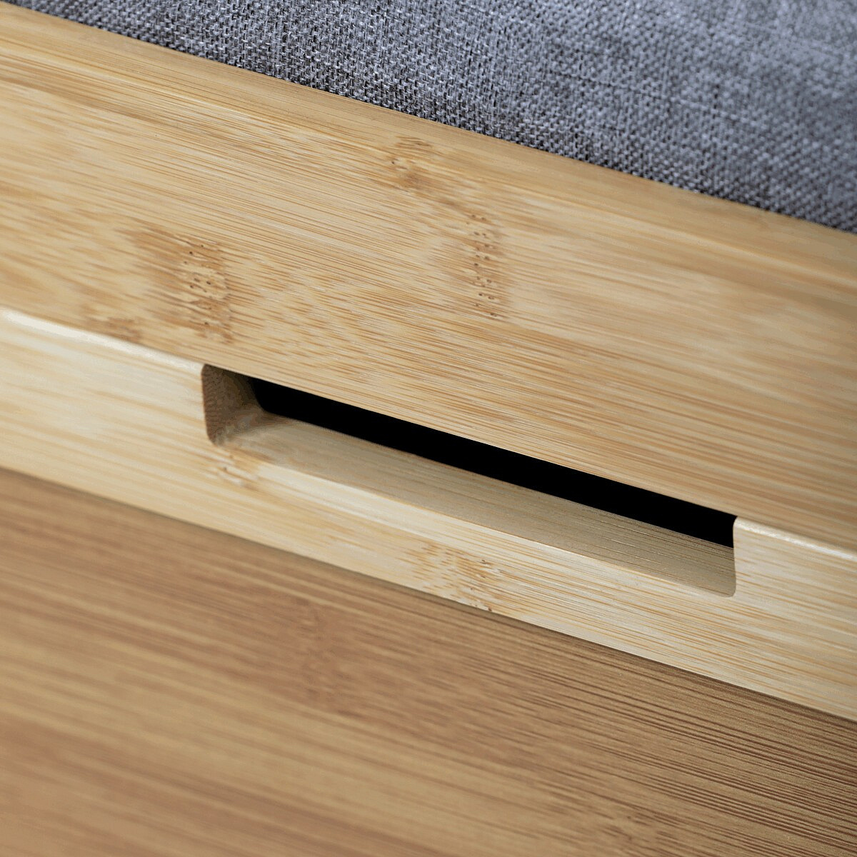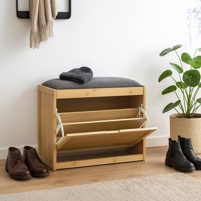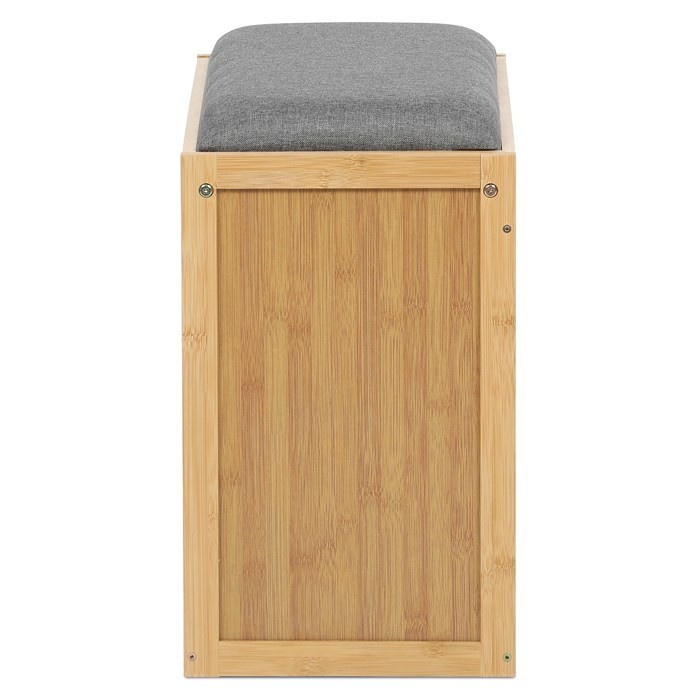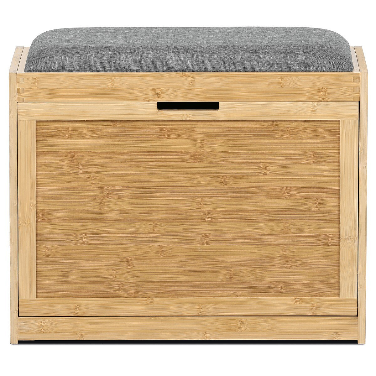 Botník DR-N1014 GREY2 značky Autronic kombinuje přírodní estetiku masivního bambusu s praktickým úložným prostorem a komfortním sedákem potaženým šedou látkou. Konstrukce je vyrobena z pevného a odolného bambusového masivu, který díky své přirozené struktuře a světlému odstínu dodává interiéru svěží a ekologický vzhled. Horní část botníku je opatřena měkkým polstrováním z kvalitní šedé textilie, která zajišťuje pohodlné sezení při obouvání. Úložný prostor je přístupný pomocí výklopného víka s praktickým výřezem pro snadné otevírání, což umožňuje efektivní uskladnění obuvi nebo dalších drobných předmětů. Stabilní rámová konstrukce z bambusu garantuje dlouhou životnost a pevnost, zatímco kompaktní rozměry botníku umožňují jeho umístění v předsíních i menších prostorách. Díky kombinaci přírodních materiálů a funkčních vlastností představuje tento botník ideální řešení pro organizaci domácnosti s důrazem na design i praktičnost.