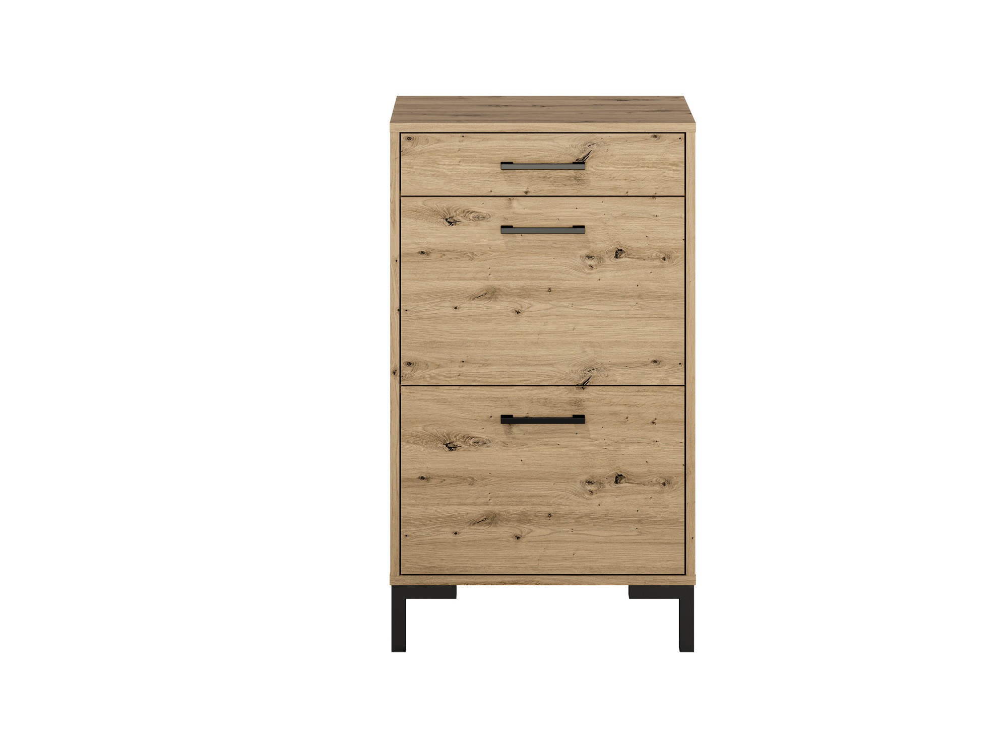 Botník NEVIO 02 je ideálním řešením pro uložení obuvi. Botník má praktický systém otevírání dveří, ale také například police a zásuvku. pro příslušenství pro péči o obuv. Díky vysokým nožkám skříně navíc nebude problém s čistotou.