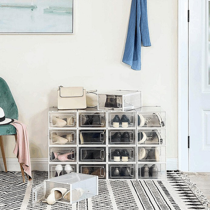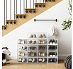 Plastový botník s osmi přihrádkami a průhlednými dvířky nabízí praktické řešení pro organizaci obuvi v domácnosti. Bílé provedení a jednoduchý design umožňují snadné začlenění do různých interiérů. Každá přihrádka je vybavena otevíracími dvířky s úchyty pro pohodlný přístup a zároveň chrání obuv před prachem. Botník je vyroben z pevného plastu, který se snadno udržuje a je navržen pro dlouhou životnost. Kompaktní rozměry umožňují umístění na podlahu i do menších prostor.