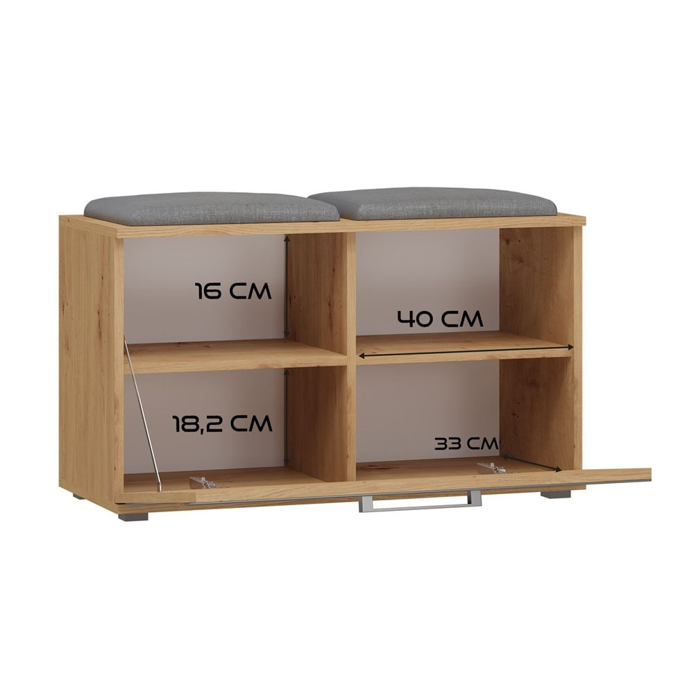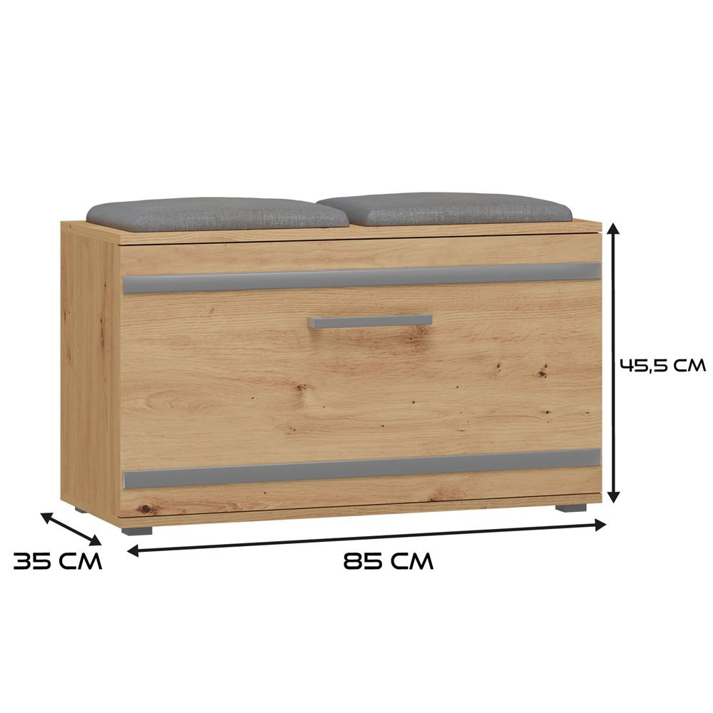 Stylový botník se sedákem Granát je ideálním řešením pro ty, kteří ocení kombinaci jednoduchosti a elegance. Nábytek je vyroben z vysoce kvalitního lamina, které je snadno udržovatelné a odolné proti oděru, dlouhou životnost nábytku zajišťují hrany zakončené odolným ABS materiálem.