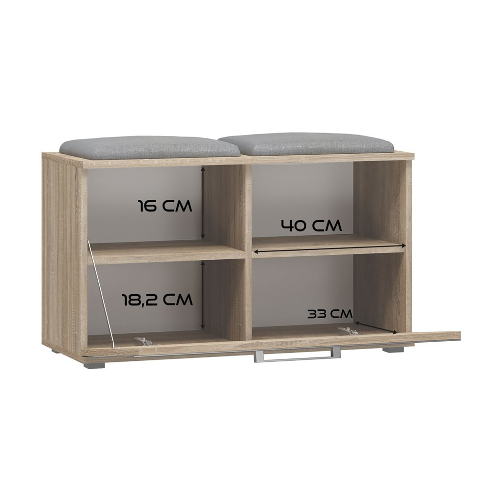 Botník Granát v moderním provedení je vyrobený z lamina. Vrchní část botníku je opatřena sedákem, který je očalouněný látkou. Sedák Vám poskytne pohodlí při obouvání i vyzouvání. Nosnost botníku je 80 kg.Botník lze doplnit věšákem Granát. Botník je dodávaný v demontu. Součástí balení je schématický montážní návod, včetně všech potřebných spojovacích prvků.